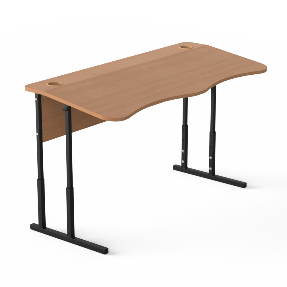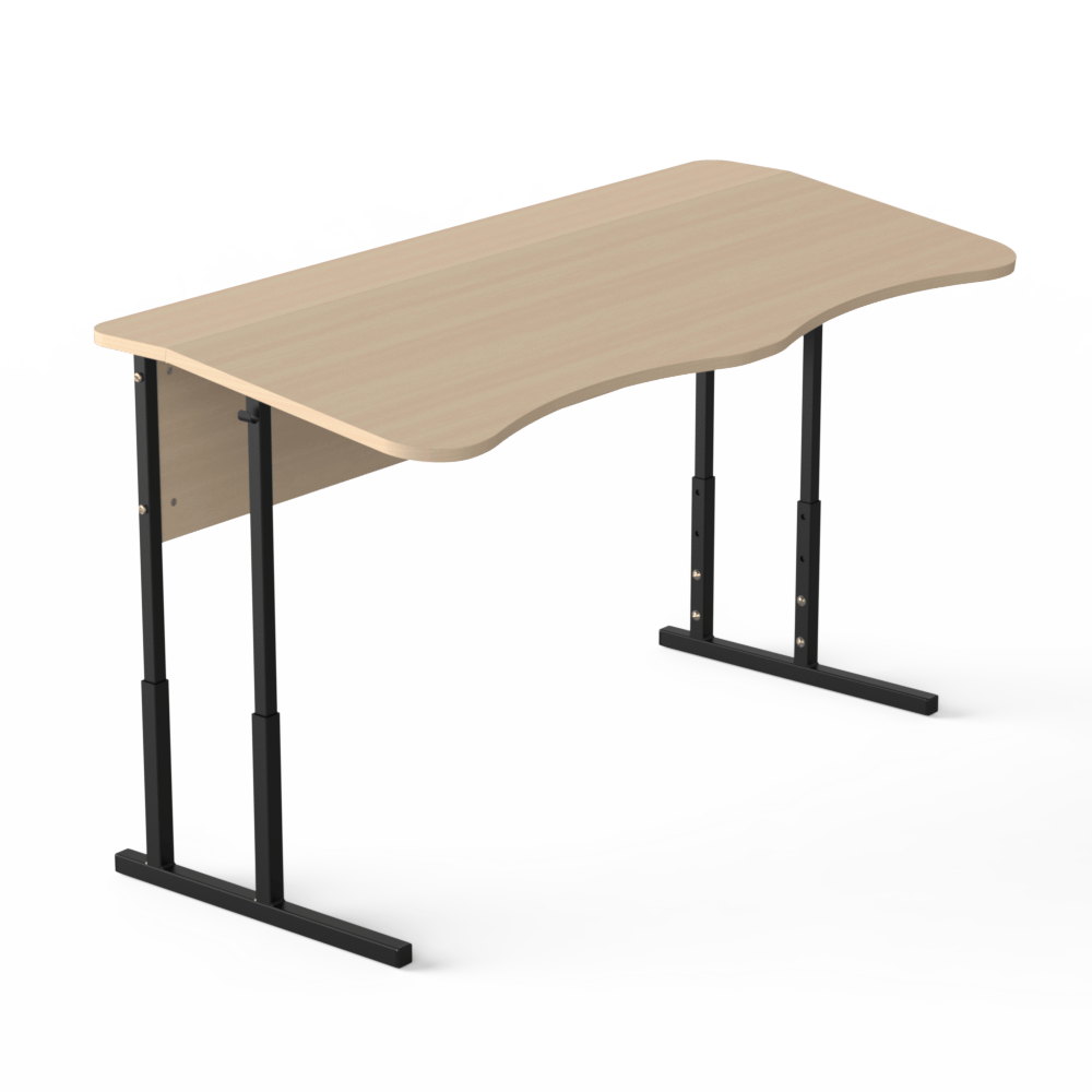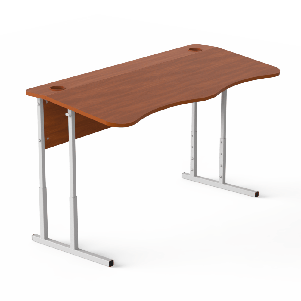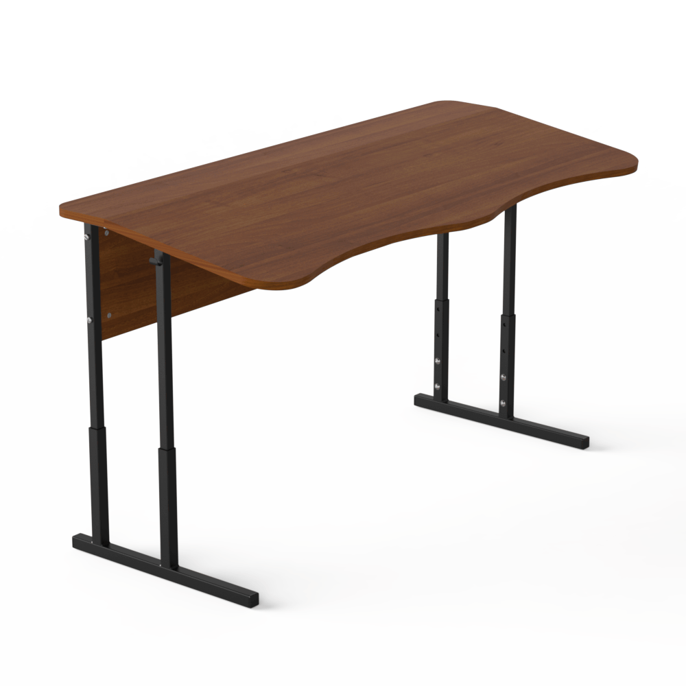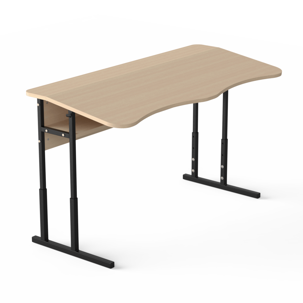 Модель, которая обладает изысканным и стильным минималистичным дизайном, изготовлена из материалов высокого качества, имеющая ряд преимуществ перед похожими изделиями. Мы советуем купить аудиторный стол с регулировкой высоты столешницы и антисколиозными вырезами всем, кто по-настоящему обеспокоен здоровьем и благополучием учеников.Преимущества антисколиозного двухместного столаДва основных преимущества этой модели:форма столешницы, которая имеет антисколиозные вырезы, позволяющие сохранить осанку, и скругленные углы, предотвращающие травмы и повреждения,возможность регулировать высоту стола по трём ростовым группам.Округлая форма столешницы и вырезы, расположенные со стороны учеников, делают стол безопаснее и даёт возможность позаботиться о здоровье учеников. Столешница немного наклонена в сторону ученика, что позволяет ребёнку, сидящему за таким столом, расположиться ещё удобнее.Особенности моделиВысота столешницы от пола регулируется для четвёртой, пятой и шестой ростовых групп, поднимаясь на 640, 700 и 760 мм соответственно. Таким образом, стол, приобретённый для учеников четвёртого класса, может ?подрастать? вместе с ними по мере перехода из класса в класс, и сохранять удобную для посадки учеников высоту.Изготавливая двухместный антисколиозный стол, регулируемый по высоте, мы использовали только качественные материалы, разрешённые действующим украинским законодательством. Все они имеют соответствующие сертификаты, выданные контролирующими санитарными органами.ДСП, из которой изготовлена столешница, относится к материалу класса эмиссии формальдегида Е1. Края ДСП покрыты кромкой из ПВХ такого же цвета, что и поверхность ДСП.Если Вы заботитесь о здоровье учеников и хотите заказать безопасную и удобную мебель для учебного кабинета, оформляйте заказ на эту модель школьного стола!