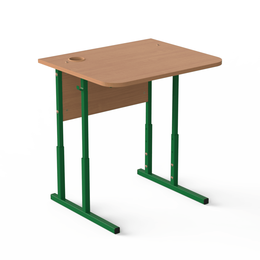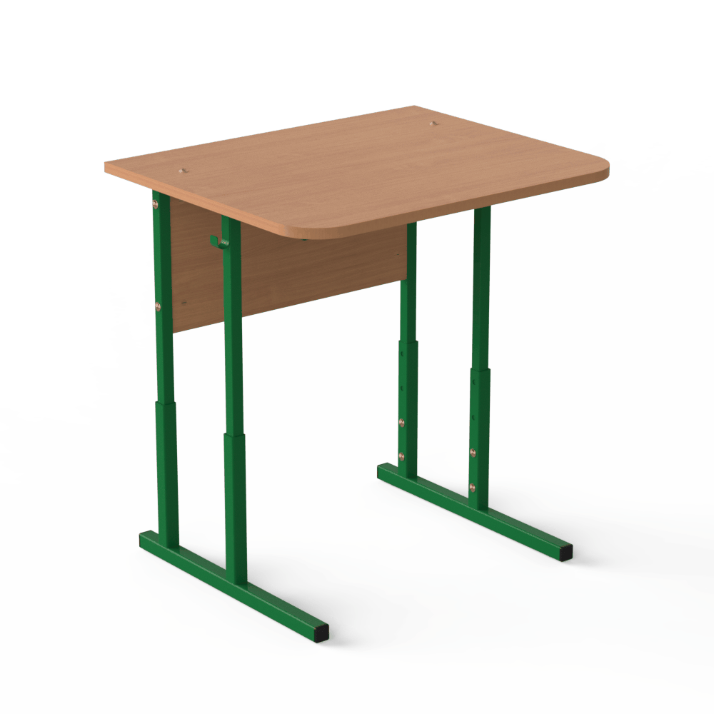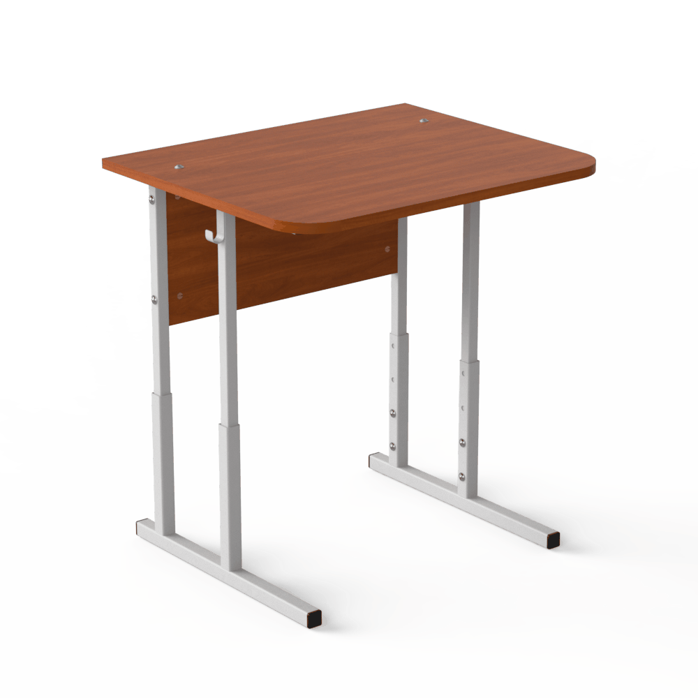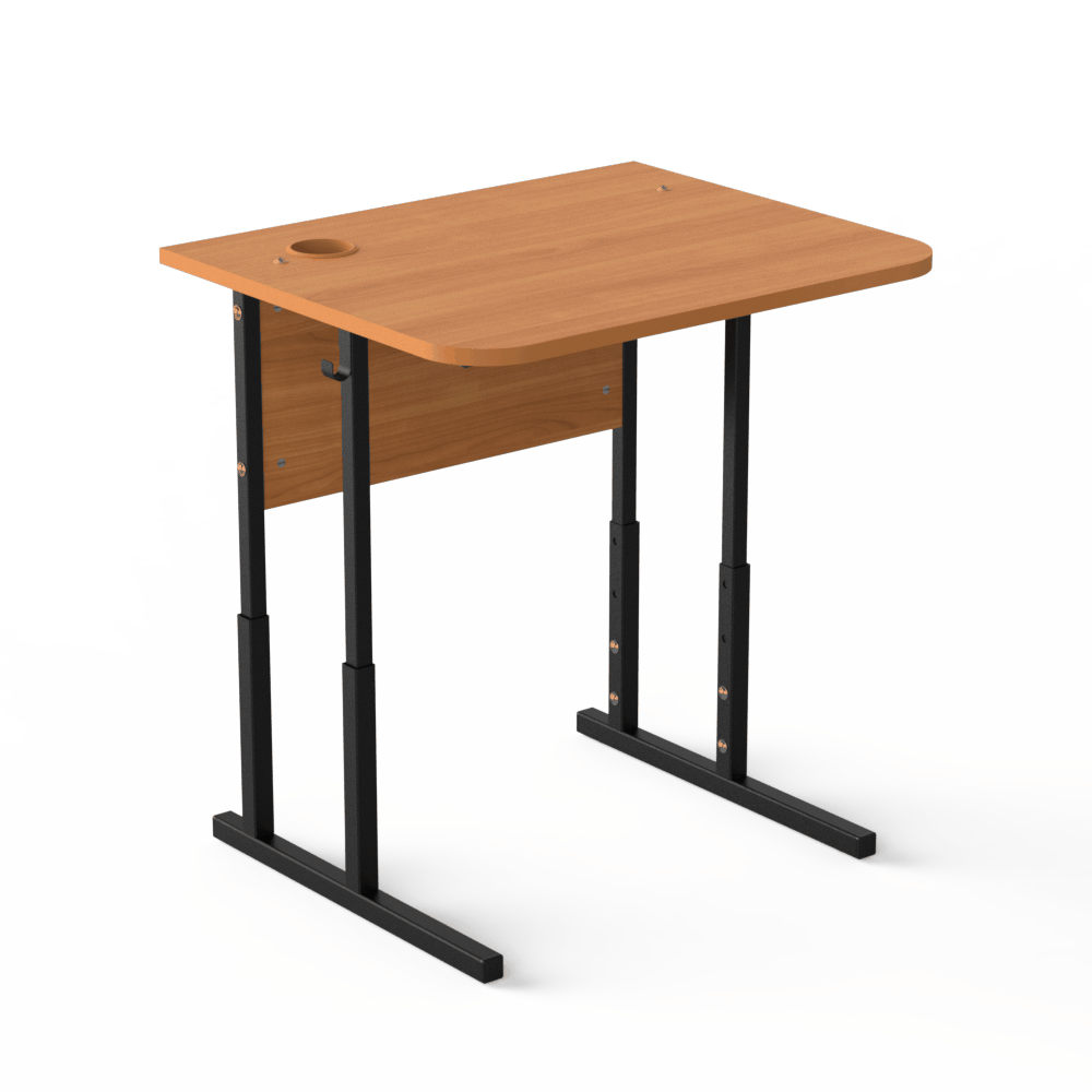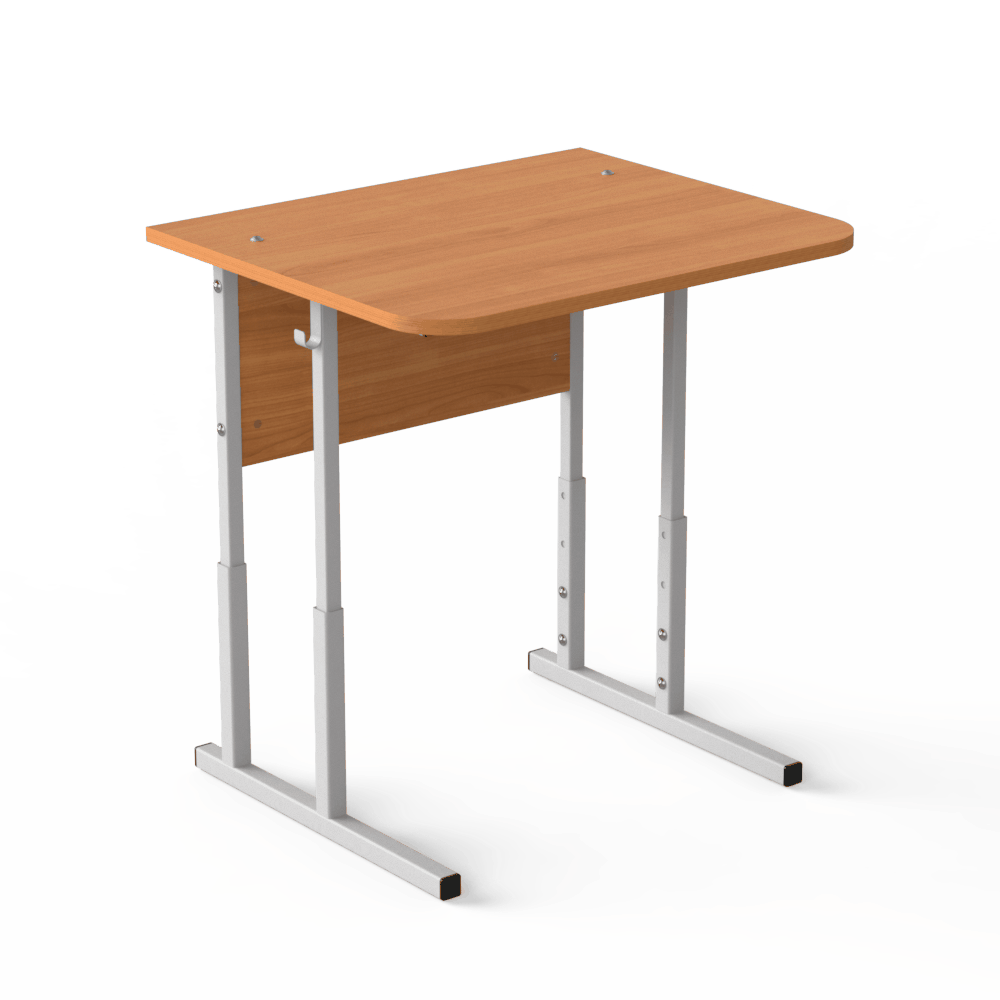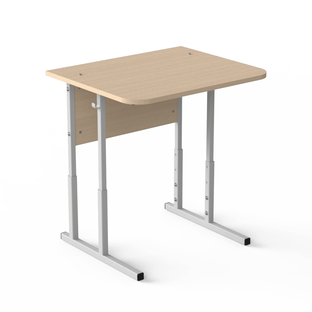 Удобный одноместный антисколиозный стол с регулировкой высоты, которая позволяет по мере роста ребёнка использовать эту модель для одного и того же ученика в течение нескольких лет. Высота столешницы регулируется при помощи специального устройства по трём ростовым группам, поднимаясь на 640, 700 и 760 мм от пола.Особенности моделиСтолешница изготовлена из качественной и прочной ДСП класса эмиссии формальдегида Е1, абсолютно безопасной для детей. Металлический каркас покрыт не вызывающей аллергии порошковой краской, которая надёжно защищает его от коррозии. По бокам расположены крючки для школьного портфеля.Неоспоримое преимущество одноместного стола ? формирование у каждого учения самостоятельности, возможность сосредоточиться на собственных задачах и личном обучении. Ученик, который сидит за одноместным столом, не будет отвлекаться на разговоры с соседом, а сможет полностью сконцентрироваться на личных задачах.Преимущества изделияИ ученикам старшей, и ученикам младшей школы одноместный стол предоставляет больше свободы ? на нём можно удобно расположить все учебники, ручки, карандаши и прочие принадлежности, не мешая соседу. Благодаря лёгкости конструкции его можно переставить на новое место, например, для работы в группах во время практического занятия. А возможность регулировать высоту позволяет создать максимально удобные условия посадки для каждого ученика.Регулировка высоты столешницы по мере роста ребёнка минимизирует расходы на покупку школьной мебели и делает данную модель отличным вариантом для школы, которая хочет приобрести актуальный и универсальный инвентарь. Надёжный металлический каркас не деформируется при использовании, ему сложно нанести какой-либо ущерб при обычной эксплуатации.Если Вы хотите заказать для школы универсальные, надёжные и удобные одноместные ученические столы с регулировкой высоты столешницы ? оформляйте заказ на эту модель!