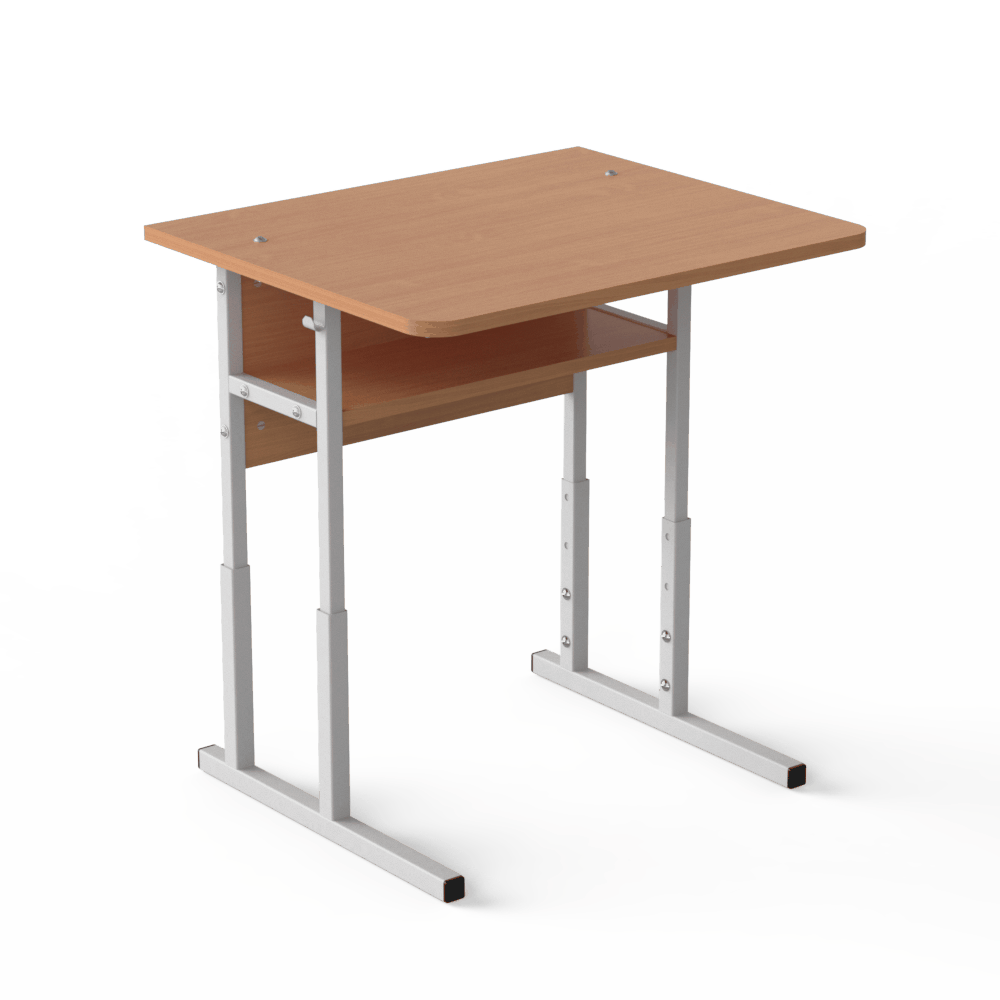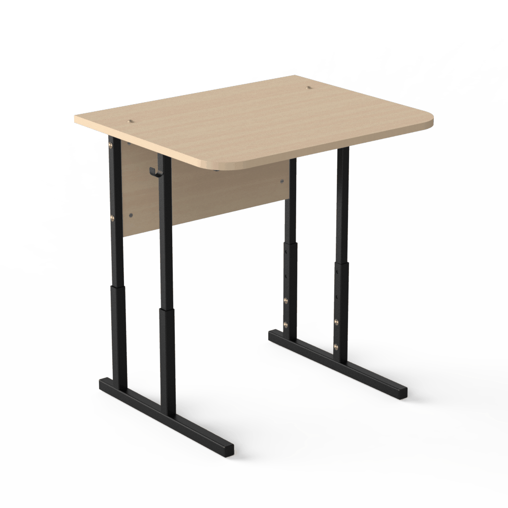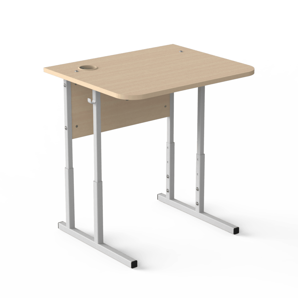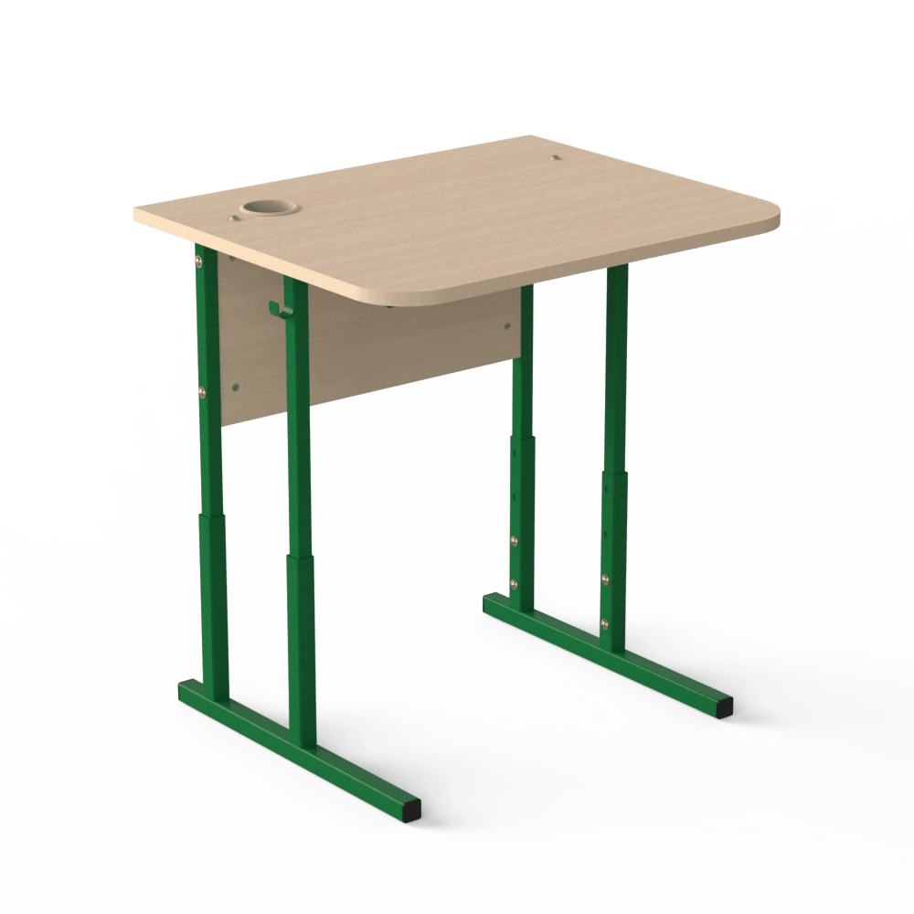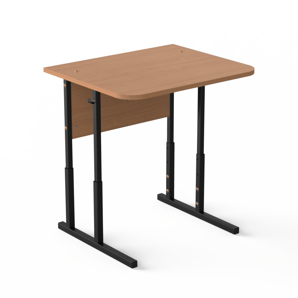 Удобный одноместный антисколиозный стол с регулировкой высоты, которая позволяет по мере роста ребёнка использовать эту модель для одного и того же ученика в течение нескольких лет. Высота столешницы регулируется при помощи специального устройства по трём ростовым группам, поднимаясь на 640, 700 и 760 мм от пола.Особенности моделиСтолешница изготовлена из качественной и прочной ДСП класса эмиссии формальдегида Е1, абсолютно безопасной для детей. Металлический каркас покрыт не вызывающей аллергии порошковой краской, которая надёжно защищает его от коррозии. По бокам расположены крючки для школьного портфеля.Неоспоримое преимущество одноместного стола ? формирование у каждого учения самостоятельности, возможность сосредоточиться на собственных задачах и личном обучении. Ученик, который сидит за одноместным столом, не будет отвлекаться на разговоры с соседом, а сможет полностью сконцентрироваться на личных задачах.Преимущества изделияИ ученикам старшей, и ученикам младшей школы одноместный стол предоставляет больше свободы ? на нём можно удобно расположить все учебники, ручки, карандаши и прочие принадлежности, не мешая соседу. Благодаря лёгкости конструкции его можно переставить на новое место, например, для работы в группах во время практического занятия. А возможность регулировать высоту позволяет создать максимально удобные условия посадки для каждого ученика.Регулировка высоты столешницы по мере роста ребёнка минимизирует расходы на покупку школьной мебели и делает данную модель отличным вариантом для школы, которая хочет приобрести актуальный и универсальный инвентарь. Надёжный металлический каркас не деформируется при использовании, ему сложно нанести какой-либо ущерб при обычной эксплуатации.Если Вы хотите заказать для школы универсальные, надёжные и удобные одноместные ученические столы с регулировкой высоты столешницы ? оформляйте заказ на эту модель!