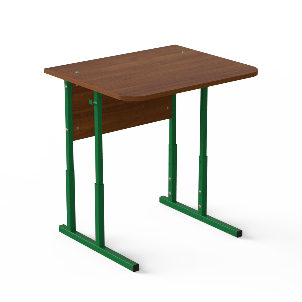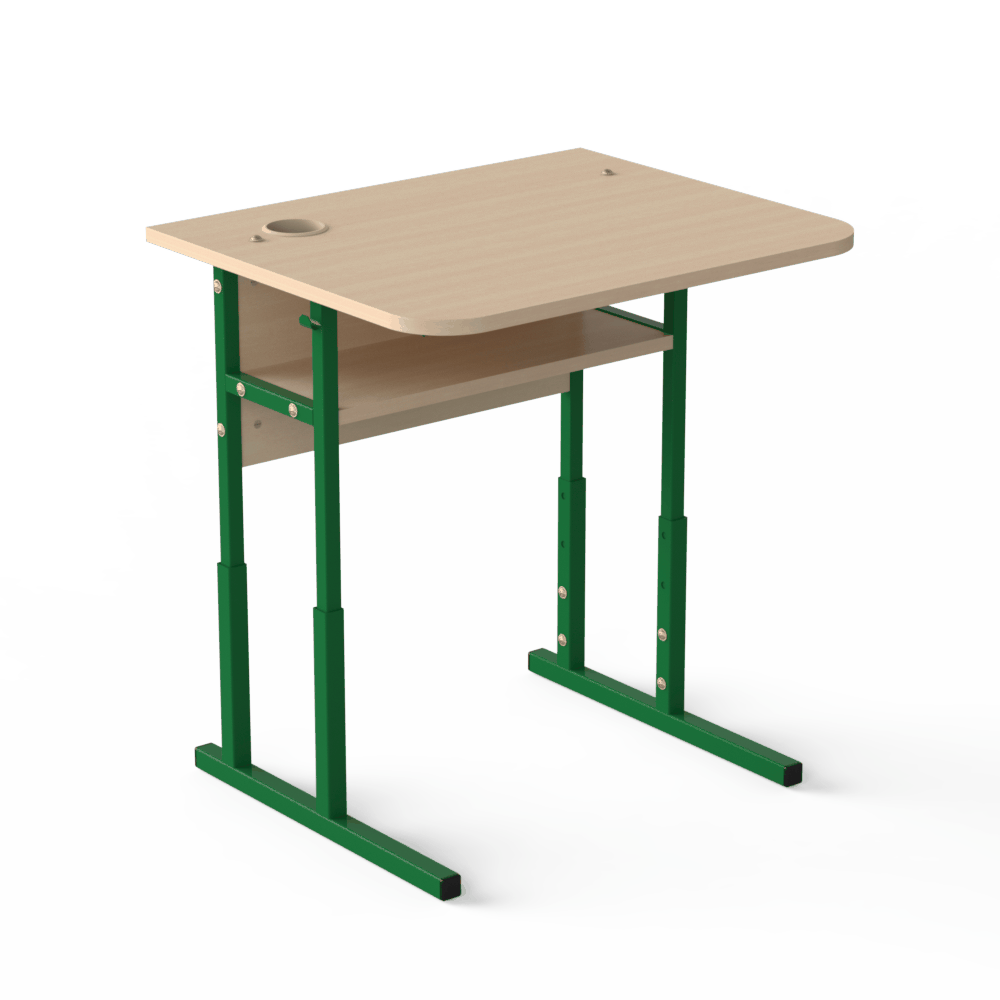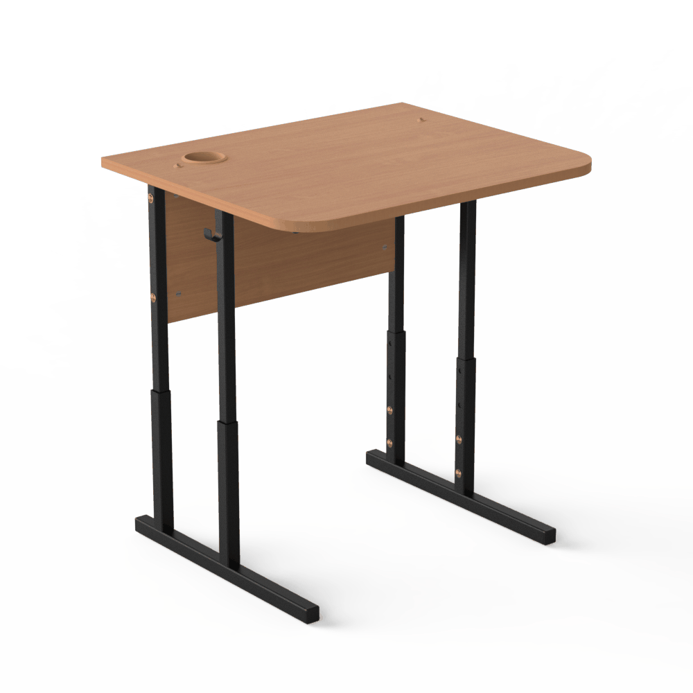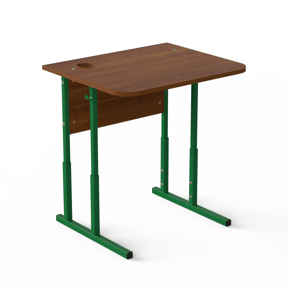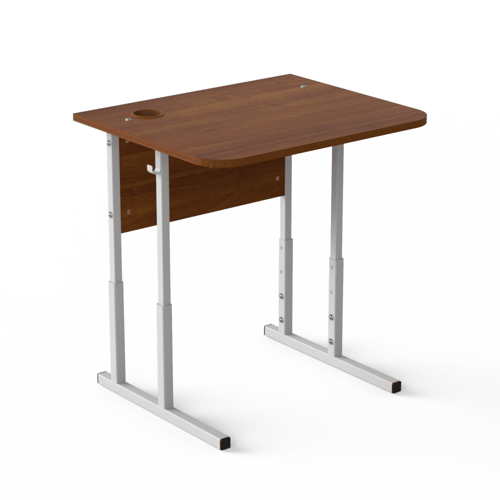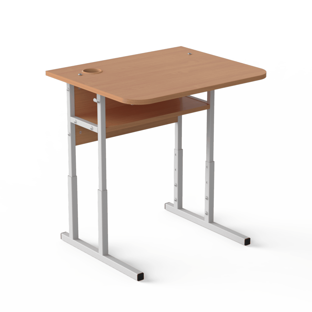 Удобный одноместный антисколиозный стол с регулировкой высоты, которая позволяет по мере роста ребёнка использовать эту модель для одного и того же ученика в течение нескольких лет. Высота столешницы регулируется при помощи специального устройства по трём ростовым группам, поднимаясь на 640, 700 и 760 мм от пола.Особенности моделиСтолешница изготовлена из качественной и прочной ДСП класса эмиссии формальдегида Е1, абсолютно безопасной для детей. Металлический каркас покрыт не вызывающей аллергии порошковой краской, которая надёжно защищает его от коррозии. По бокам расположены крючки для школьного портфеля.Неоспоримое преимущество одноместного стола ? формирование у каждого учения самостоятельности, возможность сосредоточиться на собственных задачах и личном обучении. Ученик, который сидит за одноместным столом, не будет отвлекаться на разговоры с соседом, а сможет полностью сконцентрироваться на личных задачах.Преимущества изделияИ ученикам старшей, и ученикам младшей школы одноместный стол предоставляет больше свободы ? на нём можно удобно расположить все учебники, ручки, карандаши и прочие принадлежности, не мешая соседу. Благодаря лёгкости конструкции его можно переставить на новое место, например, для работы в группах во время практического занятия. А возможность регулировать высоту позволяет создать максимально удобные условия посадки для каждого ученика.Регулировка высоты столешницы по мере роста ребёнка минимизирует расходы на покупку школьной мебели и делает данную модель отличным вариантом для школы, которая хочет приобрести актуальный и универсальный инвентарь. Надёжный металлический каркас не деформируется при использовании, ему сложно нанести какой-либо ущерб при обычной эксплуатации.Если Вы хотите заказать для школы универсальные, надёжные и удобные одноместные ученические столы с регулировкой высоты столешницы ? оформляйте заказ на эту модель!