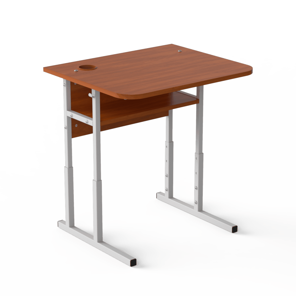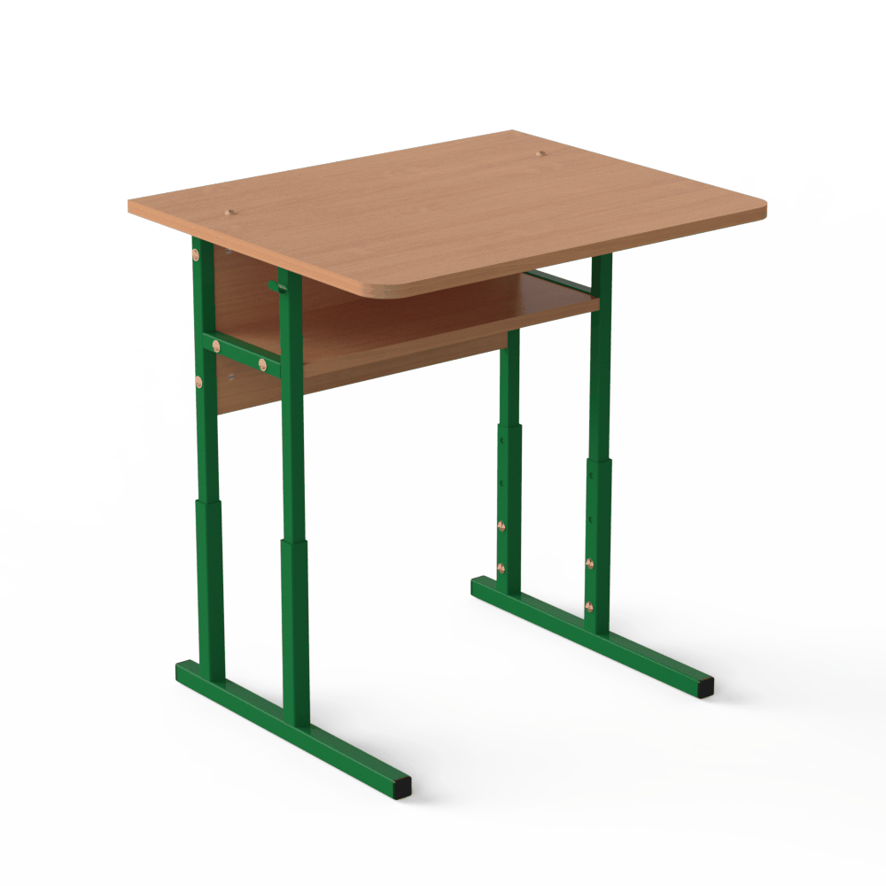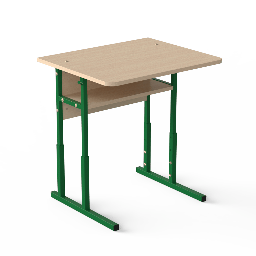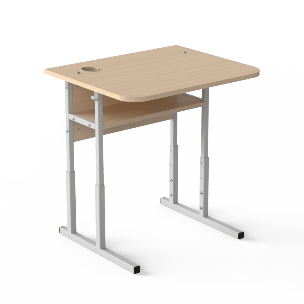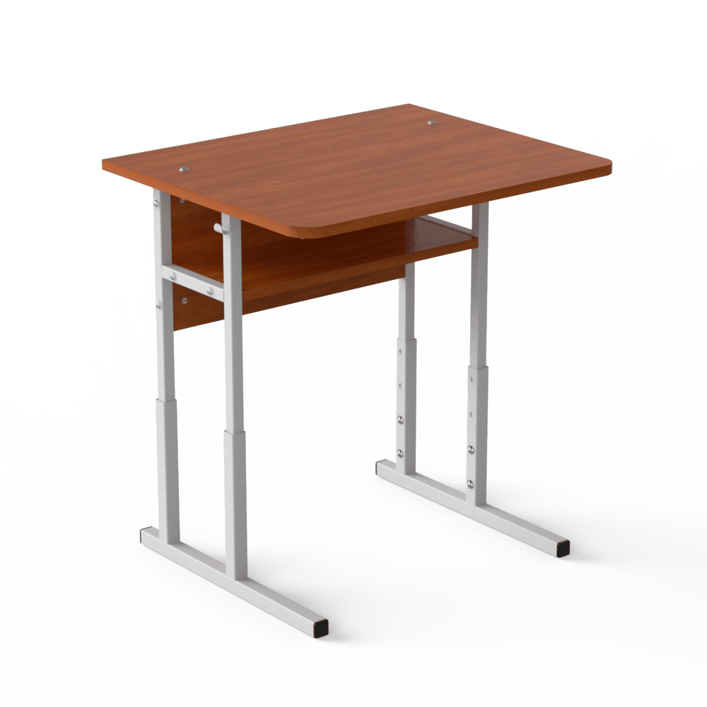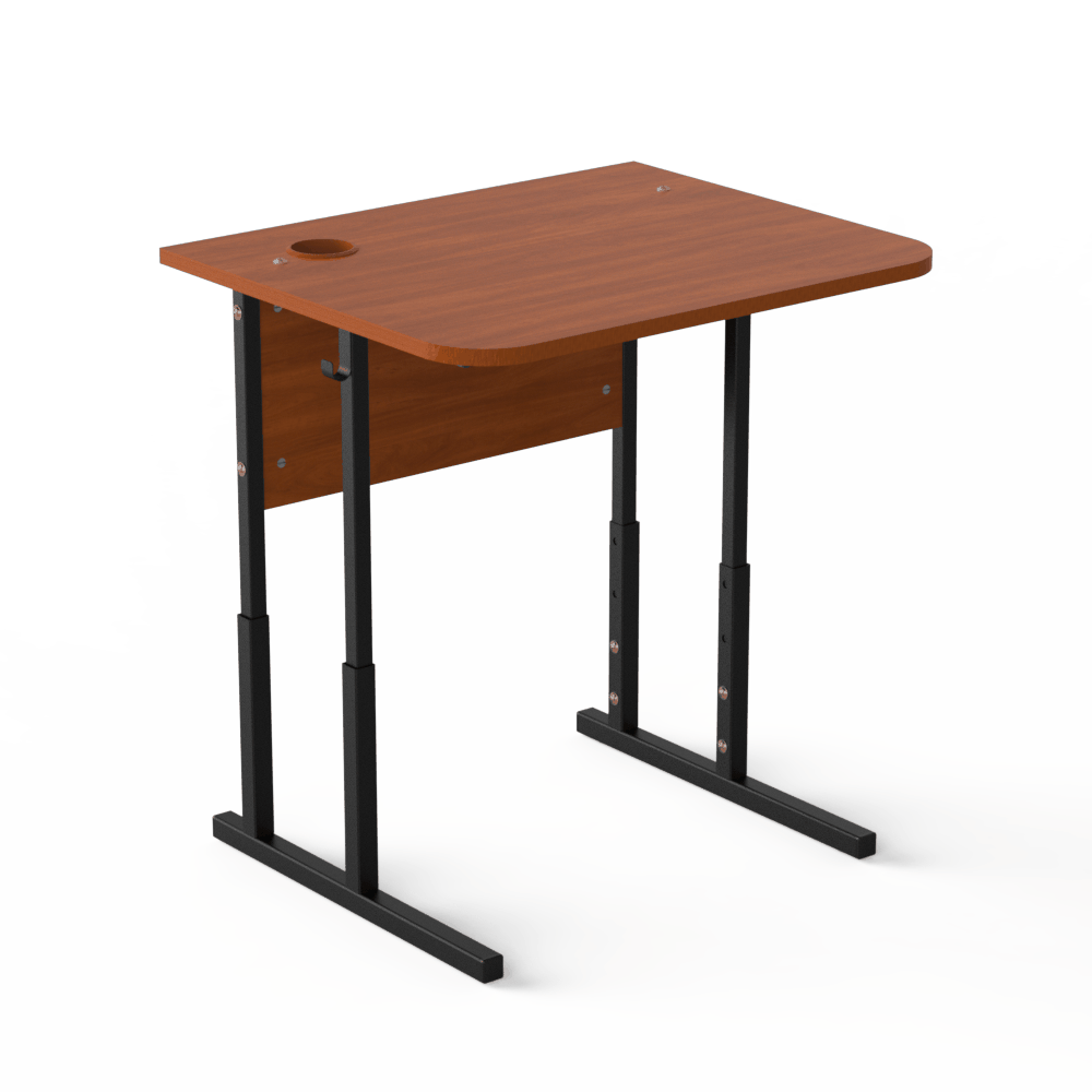 Удобный одноместный антисколиозный стол с регулировкой высоты, которая позволяет по мере роста ребёнка использовать эту модель для одного и того же ученика в течение нескольких лет. Высота столешницы регулируется при помощи специального устройства по трём ростовым группам, поднимаясь на 640, 700 и 760 мм от пола.Особенности моделиСтолешница изготовлена из качественной и прочной ДСП класса эмиссии формальдегида Е1, абсолютно безопасной для детей. Металлический каркас покрыт не вызывающей аллергии порошковой краской, которая надёжно защищает его от коррозии. По бокам расположены крючки для школьного портфеля.Неоспоримое преимущество одноместного стола ? формирование у каждого учения самостоятельности, возможность сосредоточиться на собственных задачах и личном обучении. Ученик, который сидит за одноместным столом, не будет отвлекаться на разговоры с соседом, а сможет полностью сконцентрироваться на личных задачах.Преимущества изделияИ ученикам старшей, и ученикам младшей школы одноместный стол предоставляет больше свободы ? на нём можно удобно расположить все учебники, ручки, карандаши и прочие принадлежности, не мешая соседу. Благодаря лёгкости конструкции его можно переставить на новое место, например, для работы в группах во время практического занятия. А возможность регулировать высоту позволяет создать максимально удобные условия посадки для каждого ученика.Регулировка высоты столешницы по мере роста ребёнка минимизирует расходы на покупку школьной мебели и делает данную модель отличным вариантом для школы, которая хочет приобрести актуальный и универсальный инвентарь. Надёжный металлический каркас не деформируется при использовании, ему сложно нанести какой-либо ущерб при обычной эксплуатации.Если Вы хотите заказать для школы универсальные, надёжные и удобные одноместные ученические столы с регулировкой высоты столешницы ? оформляйте заказ на эту модель!