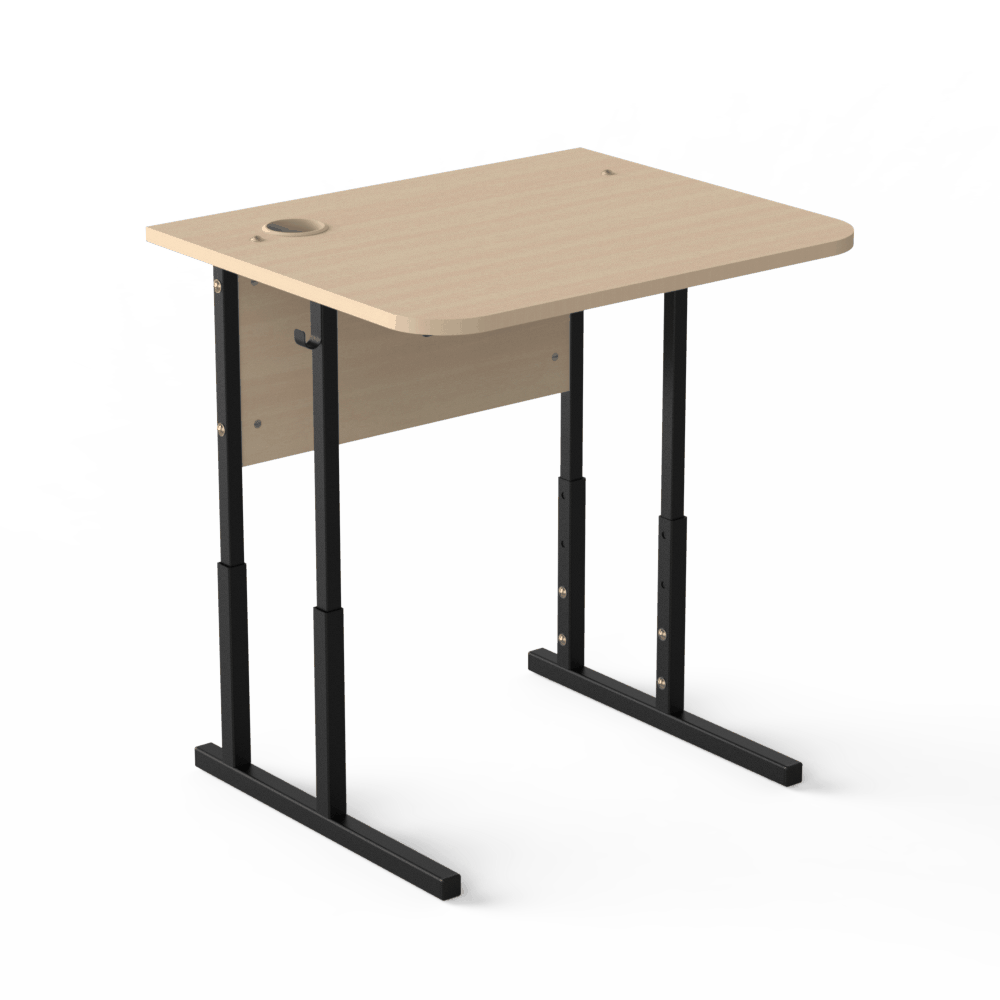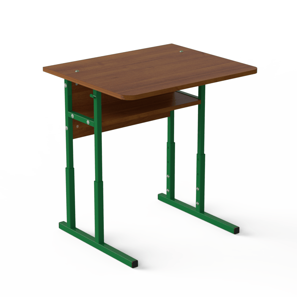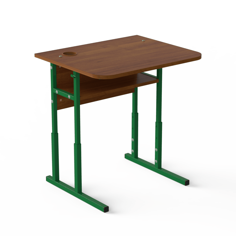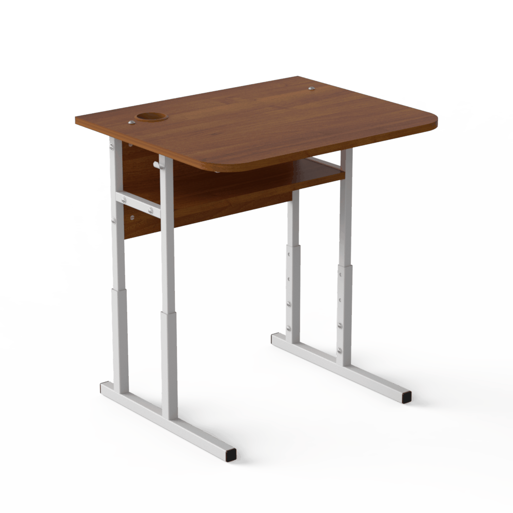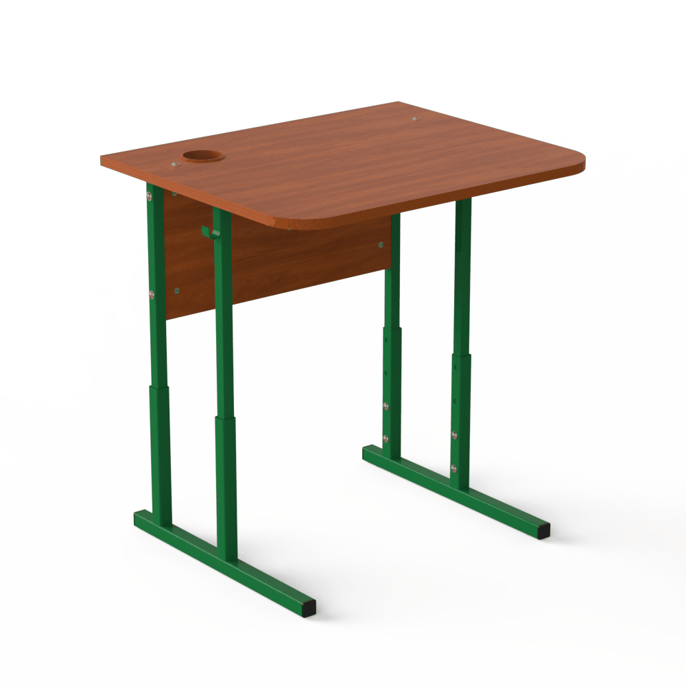 Удобный одноместный антисколиозный стол с регулировкой высоты, которая позволяет по мере роста ребёнка использовать эту модель для одного и того же ученика в течение нескольких лет. Высота столешницы регулируется при помощи специального устройства по трём ростовым группам, поднимаясь на 640, 700 и 760 мм от пола.Особенности моделиСтолешница изготовлена из качественной и прочной ДСП класса эмиссии формальдегида Е1, абсолютно безопасной для детей. Металлический каркас покрыт не вызывающей аллергии порошковой краской, которая надёжно защищает его от коррозии. По бокам расположены крючки для школьного портфеля.Неоспоримое преимущество одноместного стола ? формирование у каждого учения самостоятельности, возможность сосредоточиться на собственных задачах и личном обучении. Ученик, который сидит за одноместным столом, не будет отвлекаться на разговоры с соседом, а сможет полностью сконцентрироваться на личных задачах.Преимущества изделияИ ученикам старшей, и ученикам младшей школы одноместный стол предоставляет больше свободы ? на нём можно удобно расположить все учебники, ручки, карандаши и прочие принадлежности, не мешая соседу. Благодаря лёгкости конструкции его можно переставить на новое место, например, для работы в группах во время практического занятия. А возможность регулировать высоту позволяет создать максимально удобные условия посадки для каждого ученика.Регулировка высоты столешницы по мере роста ребёнка минимизирует расходы на покупку школьной мебели и делает данную модель отличным вариантом для школы, которая хочет приобрести актуальный и универсальный инвентарь. Надёжный металлический каркас не деформируется при использовании, ему сложно нанести какой-либо ущерб при обычной эксплуатации.Если Вы хотите заказать для школы универсальные, надёжные и удобные одноместные ученические столы с регулировкой высоты столешницы ? оформляйте заказ на эту модель!