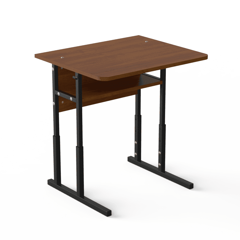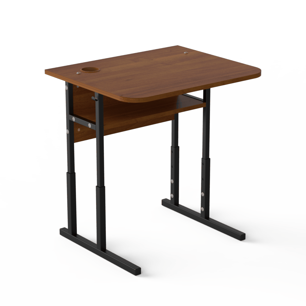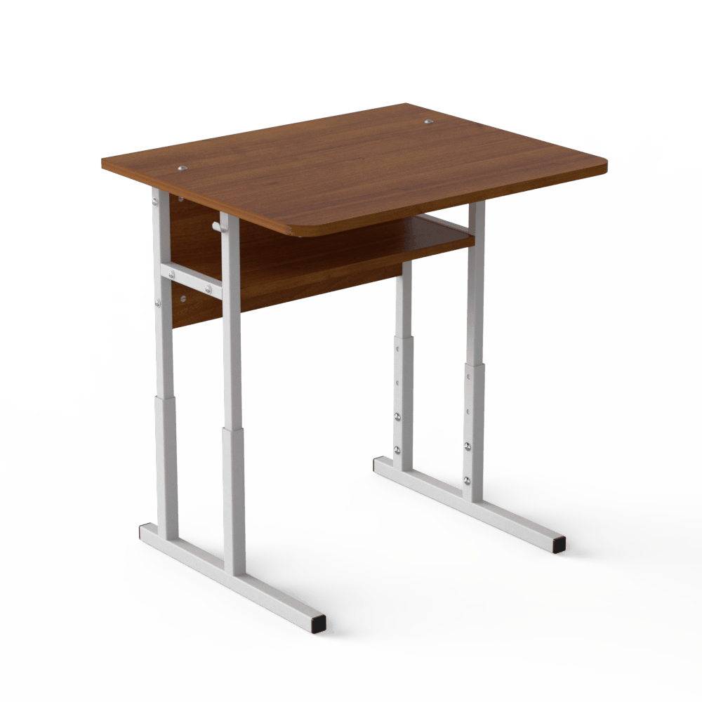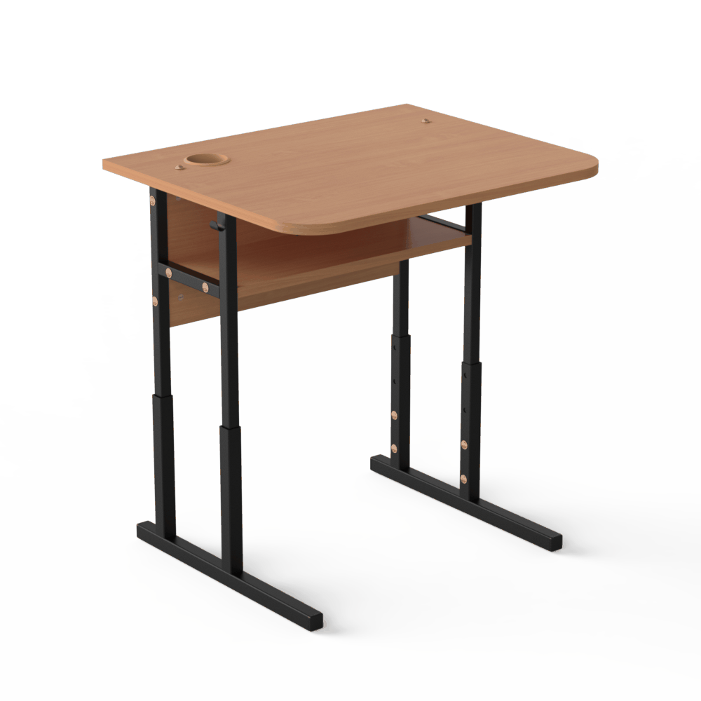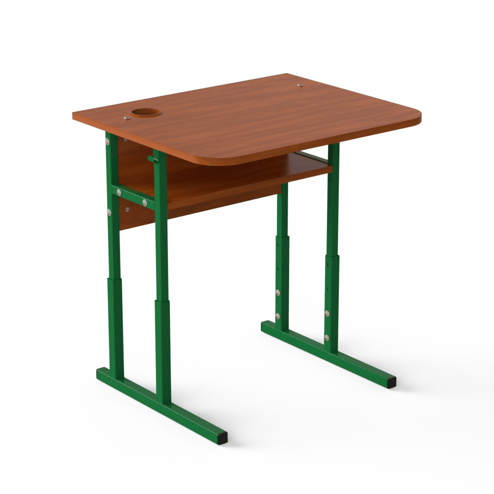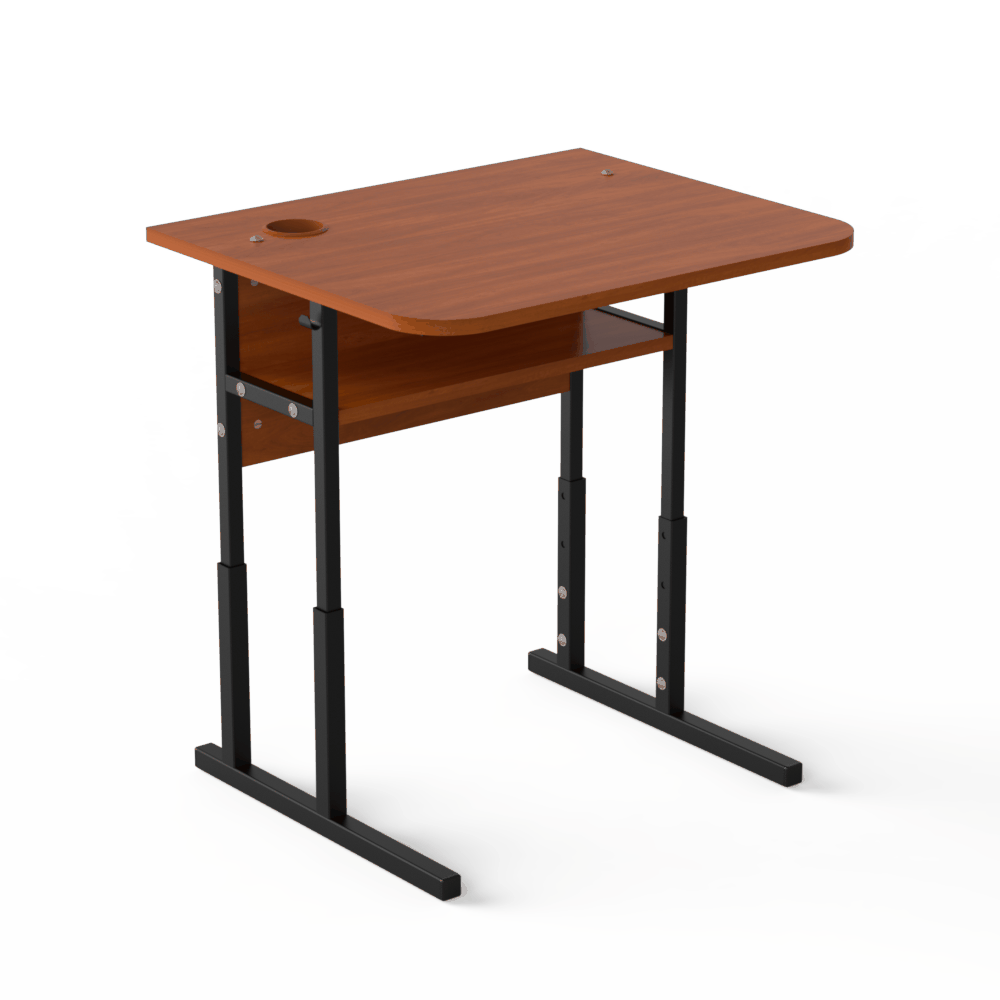 Удобный одноместный антисколиозный стол с регулировкой высоты, которая позволяет по мере роста ребёнка использовать эту модель для одного и того же ученика в течение нескольких лет. Высота столешницы регулируется при помощи специального устройства по трём ростовым группам, поднимаясь на 640, 700 и 760 мм от пола.Особенности моделиСтолешница изготовлена из качественной и прочной ДСП класса эмиссии формальдегида Е1, абсолютно безопасной для детей. Металлический каркас покрыт не вызывающей аллергии порошковой краской, которая надёжно защищает его от коррозии. По бокам расположены крючки для школьного портфеля.Неоспоримое преимущество одноместного стола ? формирование у каждого учения самостоятельности, возможность сосредоточиться на собственных задачах и личном обучении. Ученик, который сидит за одноместным столом, не будет отвлекаться на разговоры с соседом, а сможет полностью сконцентрироваться на личных задачах.Преимущества изделияИ ученикам старшей, и ученикам младшей школы одноместный стол предоставляет больше свободы ? на нём можно удобно расположить все учебники, ручки, карандаши и прочие принадлежности, не мешая соседу. Благодаря лёгкости конструкции его можно переставить на новое место, например, для работы в группах во время практического занятия. А возможность регулировать высоту позволяет создать максимально удобные условия посадки для каждого ученика.Регулировка высоты столешницы по мере роста ребёнка минимизирует расходы на покупку школьной мебели и делает данную модель отличным вариантом для школы, которая хочет приобрести актуальный и универсальный инвентарь. Надёжный металлический каркас не деформируется при использовании, ему сложно нанести какой-либо ущерб при обычной эксплуатации.Если Вы хотите заказать для школы универсальные, надёжные и удобные одноместные ученические столы с регулировкой высоты столешницы ? оформляйте заказ на эту модель!