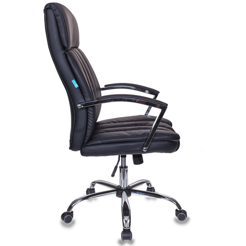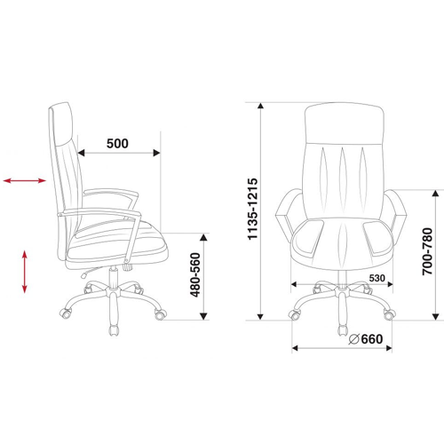 Механизм качания с регулировкой под вес и фиксацией в вертикальном положении Регулировка высоты (газлифт) Хромированные подлокотники с мягкими накладками Крестовина металлическая, хромированная Материал обивки: искусственная кожа, тканевые вставки
