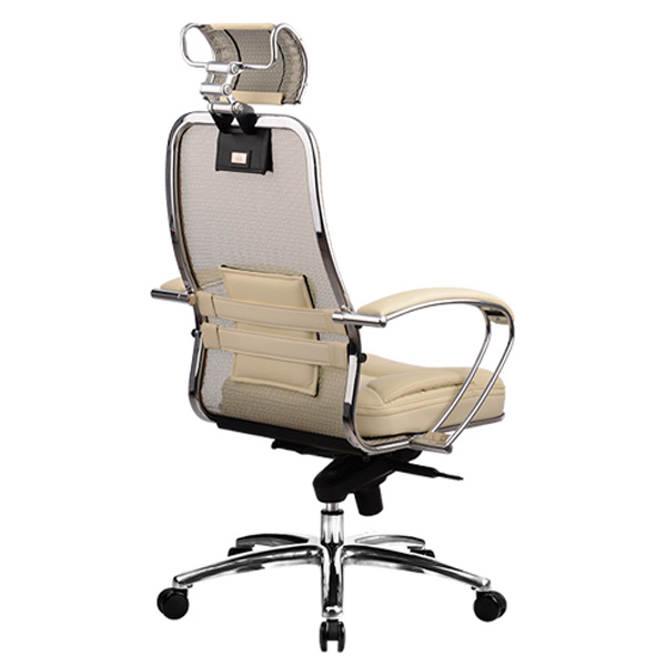Отличие от других моделей серии Samurai: - укороченная натяжная сетчатая спинка со съемным 3D подголовником, - мягкое объемное сиденье из износостойкого перфорированного материала NewLeather*, - стальные подлокотники с мягкой накладкой из износостойкого материала NewLeather*. Преимущества: Абсолютно эргономичная форма спинки соответствует анатомической форме тела человека, Новая эргономичная форма спинки, помимо улучшения эргономических свойств, придает креслу устойчивость при максимальном отклонении. Двухзонная регулировка подпора поясницы обеспечивает идеальную поддержку спины независимо от комплекции сидящего, Сверхпрочный стальной каркас спинки и сиденья, покрытый зеркальным хромом, Гарантия 10 лет: на сетчатую ткань, армированную арамидным волокном и на стальной каркас, Синхромеханизм качания MULTIBLOCK, благодаря раздельному синхронному отклонению спинки и сиденья, позволяет телу периодически разгибаться, что улучшает кровоток и разминает мышцы спины, Возможность фиксации кресла в любом положении отклонения, Смещенный вперед центр качания позволяет стопам сидящего, при отклонении кресла, оставаться на полу, сосуды не пережимаются - сохраняется ощущение легкости в ногах, Регулировка глубины сиденья с помощью специального слайдера, обеспечивает эргономически правильную посадку пользователя в кресле, создавая дополнительный комфорт и удобство. Предусмотрена возможность фиксации глубины сиденья в пяти позициях. Пятилучье зеркальное литое с противооткатными полиуретановыми роликами, Противооткатные полиуретановые ролики обеспечивают дополнительную безопасность эксплуатации кресла: без нагрузки - предотвращают случайное перемещение кресла, при сидении - позволяют легко перемещаться. Ролики долговечные, бесшумные, не оставляют следов и царапин на полу, увеличенного диаметра (60 мм), Подголовник: Съемный 3D подголовник из перфорированного износостойкого материала NewLeather*, обеспечивает идеальную поддержку головы в любом положении. Регулируется по высоте, глубине, углу наклона. Каркас подголовника: стальной, покрытый зеркальным хромом, Подлокотники: стальные, покрытые зеркальным хромом, с мягкими накладками из износостойкого материала NewLeather*, Мягкое объемное сиденье обеспечивает дополнительный комфорт и ощущение мягкости кожаного дивана, Материалы обивки спинки: сверхпрочная сетчатая ткань, армированная арамидным волокном, Материалы обивки сиденья: перфорированный износостойкий материал NewLeather* , Сетчатая ткань, армированная высокопрочным арамидным волокном, позволяет Вашему телу свободно ?дышать?, сохраняя температурный баланс, исключая любые зоны перегрева в местах соприкосновения. Полимерная плетеная ткань с невероятной прочностью и износостойкостью. **Высота сиденья в верхнем и нижнем положении может быть изменена, в зависимости от модели применяемого газ-лифта.