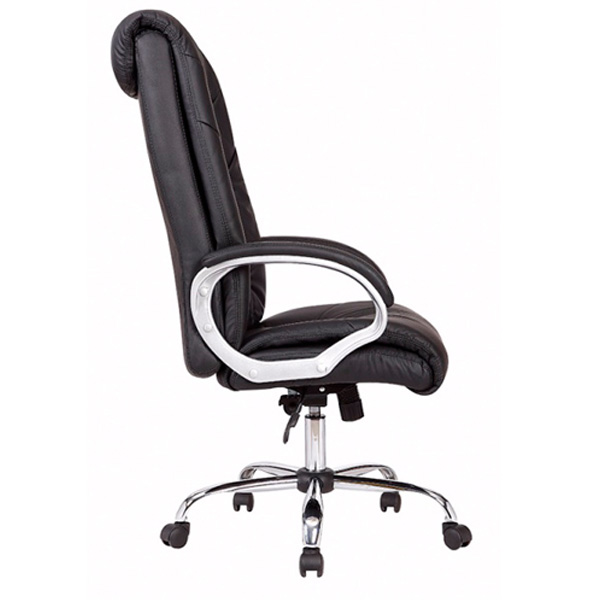 Обивка из экокожи чёрного цвета. Крестовина из хромированного метала. Подлокотники пластиковые с накладками из экокожи. Механизм подъёма. Газпатрон стандарт BIFMA 5.1. Механизм качания с фиксацией в любом положении. Размеры указаны справочные, подробную информацию уточняйте у менеджера. Кресло для руководителя 7085 способно выдерживать нагрузки до 150 кг. Такую прочность обеспечивают креслу металлическая крестовина и надёжный каркас. Высокая спинка особенно понравится людям крупной комплекции. Кресло 7085 обладает такими преимуществами, как прочная обивка, просторное сиденье и механизм качания с возможностью фиксации в рабочем положении.