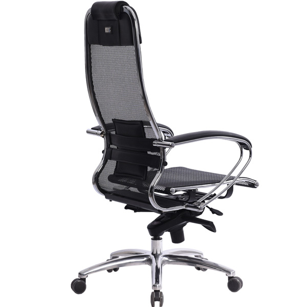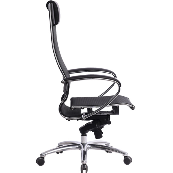 Преимущества: Абсолютно эргономичная форма спинки соответствует анатомической форме тела человека, Новая эргономичная форма спинки, помимо улучшения эргономических свойств, придает креслу устойчивость при максимальном отклонении. Двухзонная регулировка подпора поясницы обеспечивает идеальную поддержку спины независимо от комплекции сидящего, Двухзонная регулировка жесткости сиденья позволяет достичь максимального удобства (сиденье можно сделать мягче или жестче), а также при необходимости настроить угол наклона сиденья за счет разного натяжения передней и задней зоны, Сверхпрочный стальной каркас спинки и сиденья, покрытый зеркальным хромом, Гарантия 10 лет: на сетчатую ткань, армированную арамидным волокном и на стальной каркас, Синхромеханизм качания MULTIBLOCK, благодаря раздельному синхронному отклонению спинки и сиденья, позволяет телу периодически разгибаться, что улучшает кровоток и разминает мышцы спины, Возможность фиксации кресла в любом положении отклонения, Смещенный вперед центр качания позволяет стопам сидящего, при отклонении кресла, оставаться на полу, сосуды не пережимаются - сохраняется ощущение легкости в ногах, Регулировка глубины сиденья с помощью специального слайдера, обеспечивает эргономически правильную посадку пользователя в кресле, создавая дополнительный комфорт и удобство. Предусмотрена возможность фиксации глубины сиденья в пяти позициях. Пятилучье зеркальное литое с противооткатными полиуретановыми роликами, Противооткатные полиуретановые ролики обеспечивают дополнительную безопасность эксплуатации кресла: без нагрузки - предотвращают случайное перемещение кресла, при сидении - позволяют легко перемещаться. Ролики долговечные, бесшумные, не оставляют следов и царапин на полу, увеличенного диаметра (60 мм), Подголовник: мягкий комфортный из перфорированного износостойкого материала NewLeather*, Обновленный дизайн подголовника Подлокотники: стальные, покрытые зеркальным хромом, с мягкими накладками из износостойкого материала NewLeather*, Материалы обивки спинки и сиденья: сверхпрочная сетчатая ткань, армированная арамидным волокном, Сетчатая ткань, армированная высокопрочным арамидным волокном, позволяет Вашему телу свободно ?дышать?, сохраняя температурный баланс, исключая любые зоны перегрева в местах соприкосновения. Полимерная плетеная ткань с невероятной прочностью и износостойкостью. **Высота сиденья в верхнем и нижнем положении может быть изменена, в зависимости от модели применяемого газ-лифта.