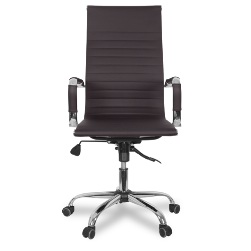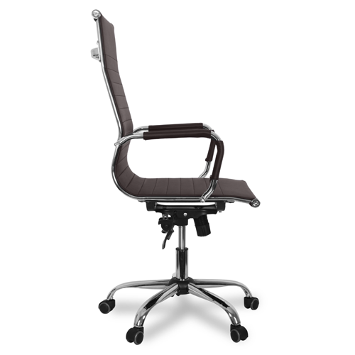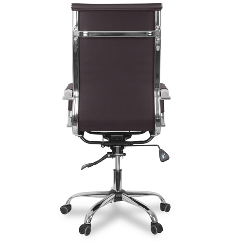 Механизм качания с регулировкой под вес и фиксацией в любом положении Регулировка высоты газлифт Каркас металлический хромированный Подлокотники хромированные с накладками Материал обивки: кожа PU Цвет: коричневый