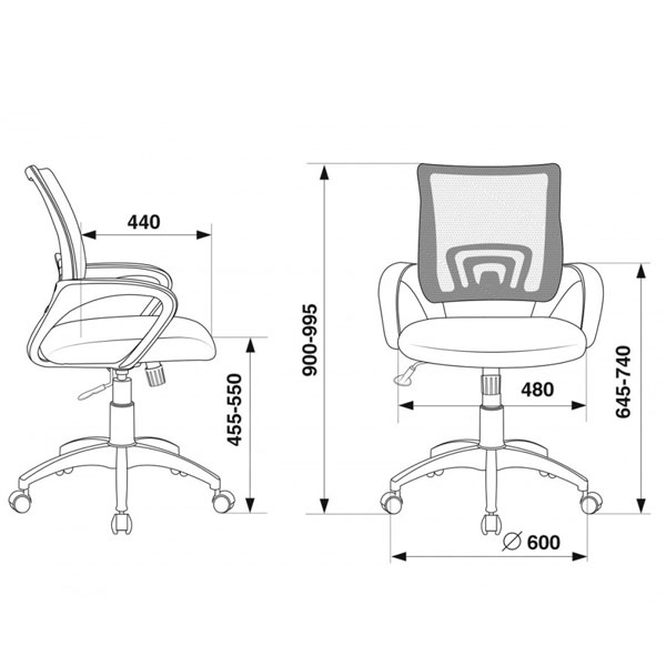 Эргономичное рабочее кресло Механизм качания с регулировкой под вес и возможностью фиксации в вертикальном положении Регулировка высоты (газлифт) Крестовина пластик Подлокотники пластиковые Ограничение по весу: 120 кг Соответствует стандарту Bifma