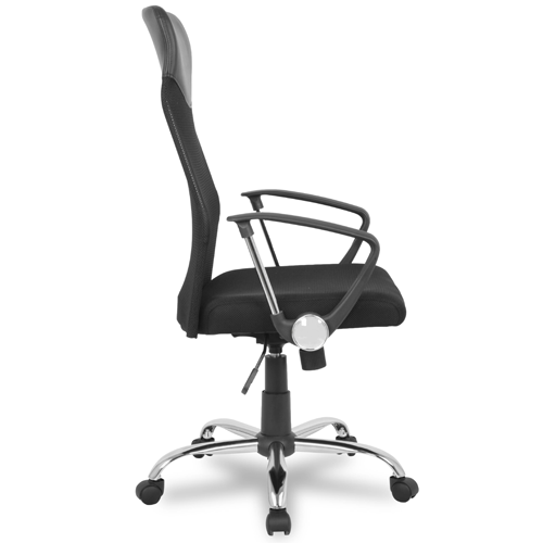 Механизм качания с регулировкой под вес и фиксацией в вертикальном положении Регулировка высоты газлифт Крестовина металлическая хромированная Подлокотники выполнены из ударопрочного экологически чистого пластика с хромированными вставками Материал обивки: износоустойчивый акрил со вставками из кожи с полиуретановым покрытием