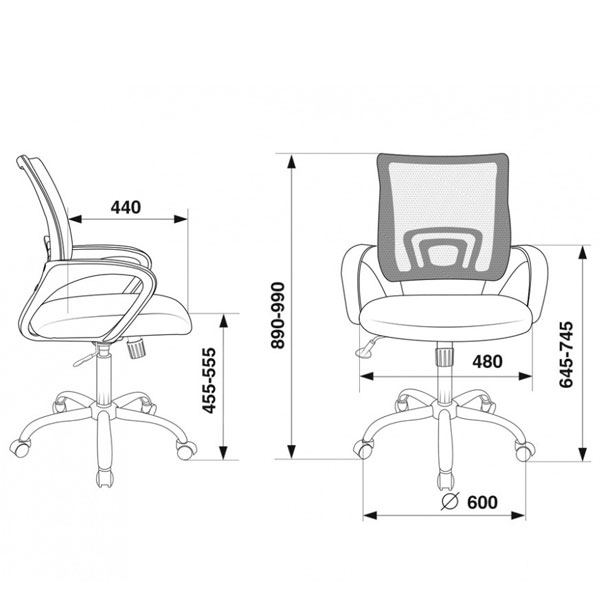 Эргономичное рабочее кресло Механизм качания с регулировкой под вес и возможностью фиксации в вертикальном положении Регулировка высоты (газлифт) Крестовина хром Подлокотники пластиковые Наполнитель сиденья: формованный пенополиуретан Ограничение по весу: 120 кг Соответствует стандарту Bifma