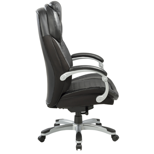 Саморегулирующийся механизм качания с регулировкой под вес Регулировка высоты газлифт Подвижные пластиковые подлокотники с мягкими накладками Пластиковая крашеная крестовина с накладками Материал обивки: рециклированная кожа, искусственная кожа задняя часть спинки