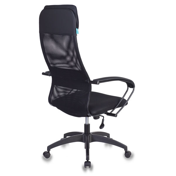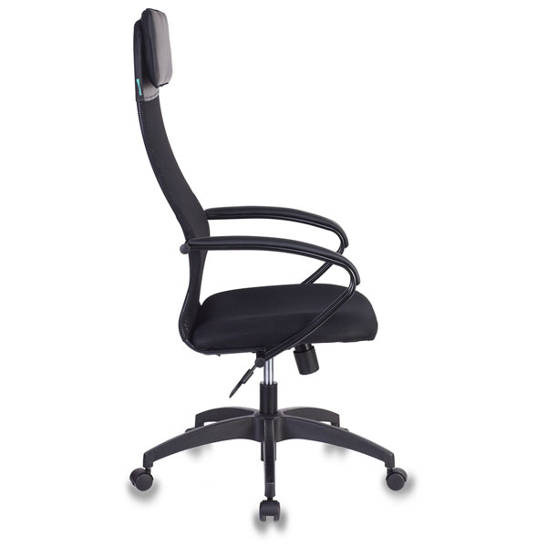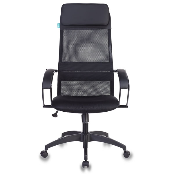 Кресло руководителя современного дизайна Конструкция: Механизм качания с регулировкой под вес и фиксацией в вертикальном положении Регулировка высоты (газлифт) Пластиковая крестовина Подлокотники металлические крашеные цвет черный с накладками из искусственной кожи Материал обивки: спинка: сетчатая ткань + искусственная кожа (подголовник) сиденье: сетчатая ткань