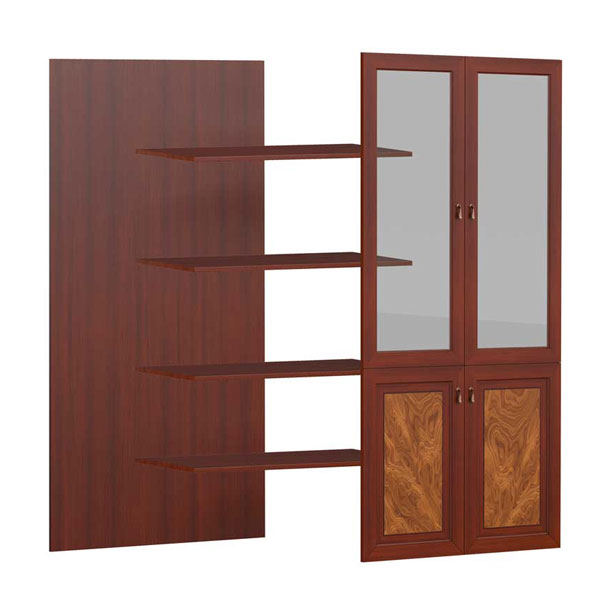 В комплект входят: Стол руководителя BERKELEY BRK8310002 - 1 шт. Приставка угловая левая BERKELEY BRK8320302 - 1 шт. Приставка BERKELEY BRK8320002 - 1 шт. Креденция BERKELEY BRK8340202 - 1 шт. Наполнение шкафа 2 створки BERKELEY BRK8354102 - 2 шт. Пара боковин шкафа BERKELEY BRK8356102 - 2 шт. Топ и цоколь для шкафа 2 створки BERKELEY BRK8357202 - 2 шт. материал: МДФ, массив покрытие: шпон, искусственная кожа толщина столешниц: 30 мм толщина топов: 80 мм толщина каркасов: 50 мм кромка столешниц и топов: массив стекло тонированное в массе, с деревянной рамкой