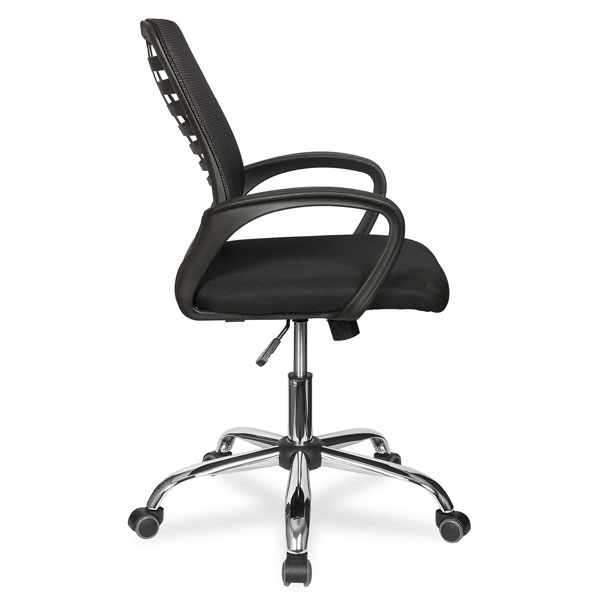 Механизм качания с регулировкой под вес и фиксацией в вертикальном положении Регулировка высоты (газлифт) Крестовина металлическая, хромированная Подлокотники выполнены из ударопрочного экологически чистого пластика Материал обивки: капроновая сетка (спинка) + полиэстер (сидение).