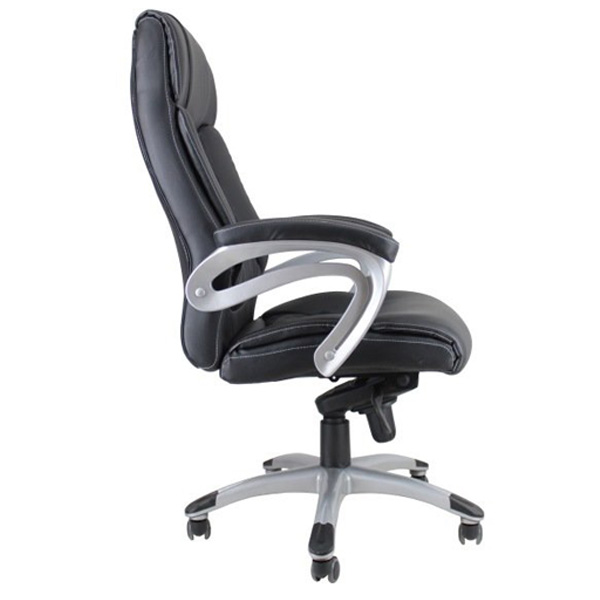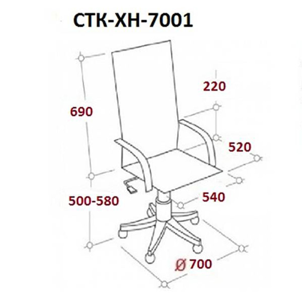 Усиленное широкое кресло руководителя современного дизайна. Кресло СТК-XH-7001 с большим успехом может вписаться как в современный офис, так и в интерьер квартиры. Механизм качания усиленный с регулировкой под вес и фиксацией в пяти положениях . Регулировка высоты: усиленный газлифт 4 класса. Сидение кресла сделано на 5см шире, а спинка на 8 см выше, чем у стандартного кресла. Каркас раздельный из многослойной фанеры. Подлокотники пластиковые, покрашены серебристой краской, покрыты лаком с мягкими накладками, обиты экокожей. Крестовина пластиковая, покрашена серебристой краской, покрыта лаком с рельефными накладками черного цвета. Ролики прорезиненные.