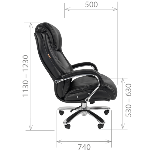 Обивка: натуральная кожа Подлокотники: Металлические хромированные с мягкими накладками, обитыми натуральной кожей Механизм качания: Усиленный механизм качания с возможностью фиксации кресла в рабочем положении Крестовина: Металлическая хромированная диаметром 740 мм Газпатрон: Увеличенного диаметра, 4 класса по стандарту Germany DIN 4550 Ролики: Стандарт BIFMA 5,1 (США). Диаметр штока 11 мм.