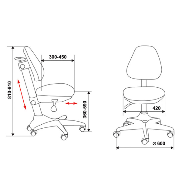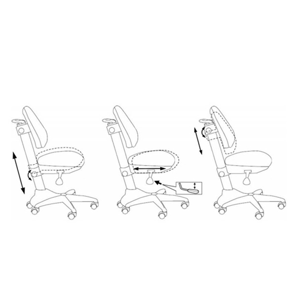 Эргономичное детское кресло Конструкция: Независимые регулировки высоты сиденья и спинки с динамическим изменением глубины сиденья Дополнительная регулировка глубины сиденья Усиленная конструкция Сиденье перемещается по штанге вверх-вниз ипо платформе взад-вперед Эргономичная спинка с жесткой поддержкой спины Спинка пружинит и перемещается вверх-вниз по опоре Ручка для перевозки.