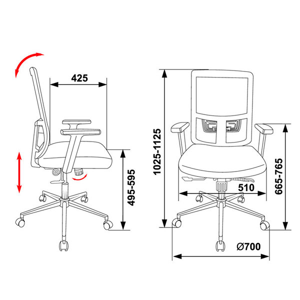 Синхромеханизм качания с возможностью фиксации в любом положении Регулировка высоты (газлифт) Поясничная поддержка Подлокотники пластиковые Крестовина хромированная