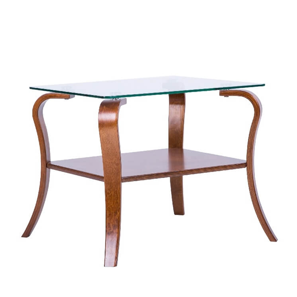 Стол журнальный 'Шарм' - небольшой и компактный прямоугольный столик с фигурными ножками отлично подойдет для вашего загородного дома или квартиры. Столик изготовлен из массива и шпона, прочен и долговечен. Столешница выполнена из закаленного стекла, за счет чего легко поддается влажной уборке. А ножки из массив дерева обеспечат надежность стола. Материалы: стекло, гнутоклееный шпон березы, МДФ.