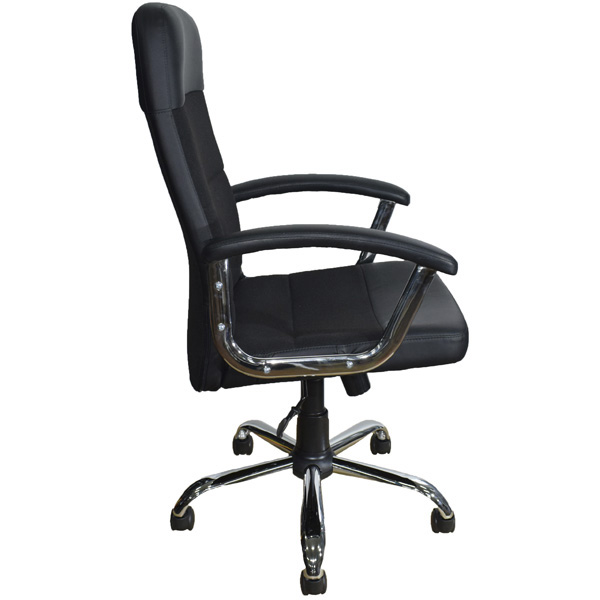 Офисное кресло КР58 хром черное подлокотники и пятилучье - хром, газлифт L-100мм, механизм качания- MK - с фиксацией в рабочем положении, ролики диаметр штока 11мм.