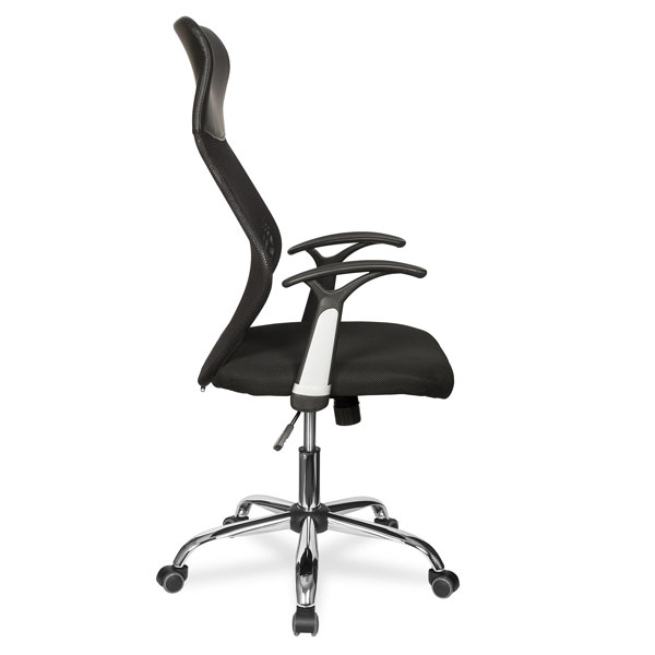 Механизм качания с регулировкой под вес и фиксацией в вертикальном положении Регулировка высоты (газлифт) Крестовина металлическая хромированная Подлокотники выполнены из ударопрочного экологически чистого пластика с хромированными вставками Материал обивки: износоустойчивый акрил со вставками из кожи PU