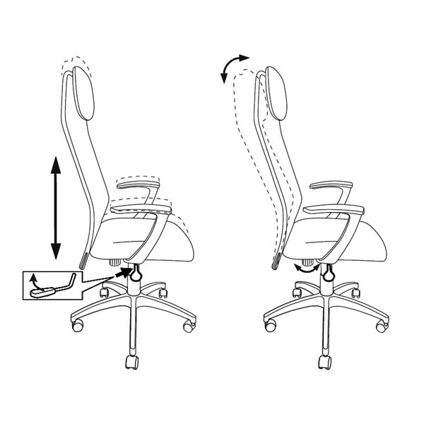 Кресло руководителя Конструкция: Регулировка высоты газлифт Пружинно-винтовой механизм качания спинки Ограничение по весу: 120 кг Материал обивки: сетчатая ткань