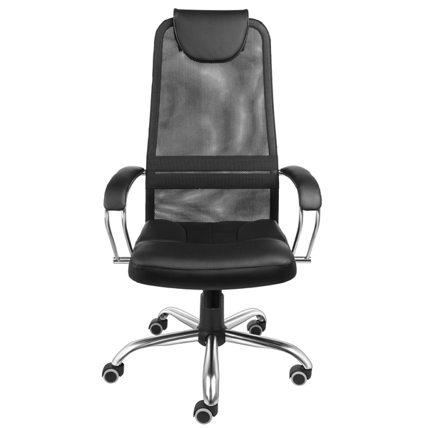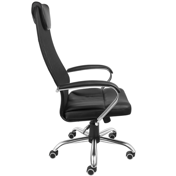 Кресло AV 144 'Сан-Франциско' CH(142 CH) MB экокожа перф /сетка односл/эко /253/470/223 черн/чер/черн. Ролики полиуретановые Сидение перфорированная экокожа/экокожа Подлокотники экокожа Спинка перфорированная экокожа/TW-сетка Подголовник экокожа Крестовина хром