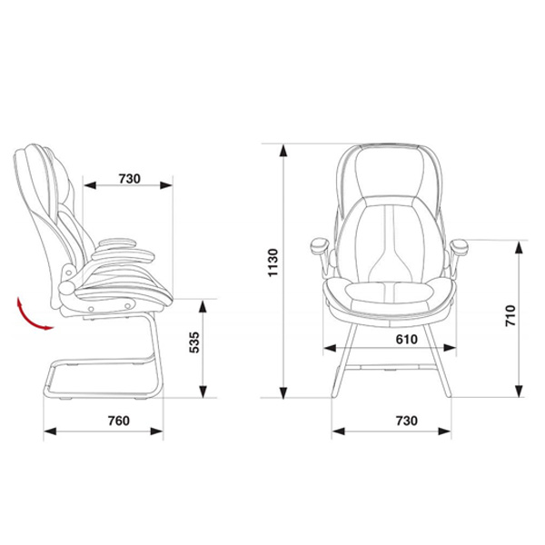 Полозья металлические, крашеные Откидные подлокотники с мягкими накладками Ограничение по весу: 100 кг Материал обивки: дублированная кожа