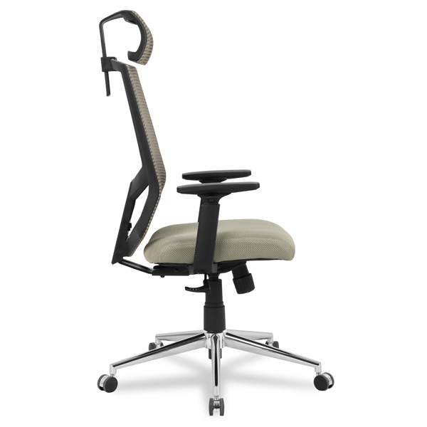 Синхромеханизм качания с регулировкой под вес и фиксацией в нескольких положениях Регулировка высоты (газлифт) Крестовина металлическая, хромированная. Регулируемый по высоте подголовник. Регулируемые по высоте подлокотники выполнены из ударопрочного экологически чистого пластика Материал обивки: капроновая сетка (спинка) + полиэстер (сидение)