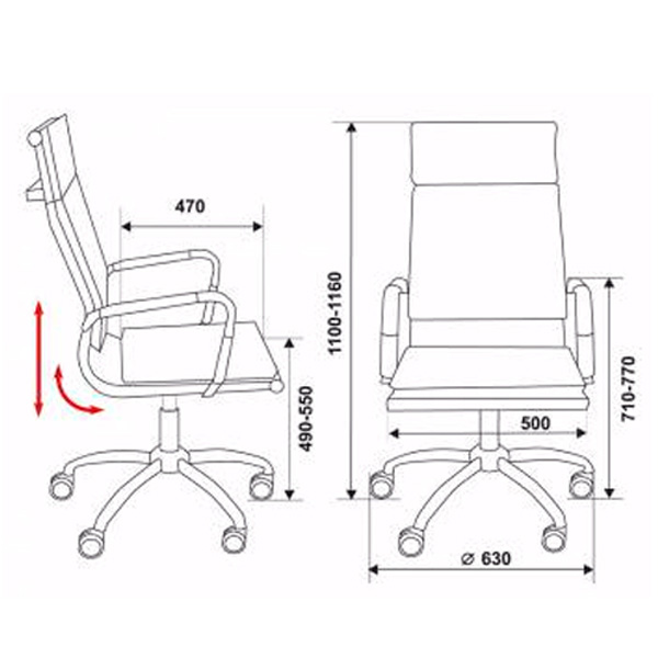 Кресло руководителя современного дизайна Конструкция: Механизм со смещенной осью качания с регулировкой под вес и фиксацией в вертикальном положении Регулировка высоты (газлифт) Каркас металлический хромированный Подлокотники металлические хромированные с накладками из искусственной кожи