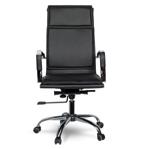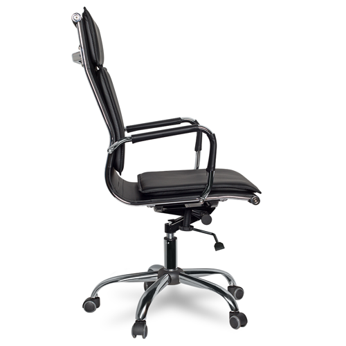 Конструкция: Механизм качания с регулировкой под вес и фиксацией в любом положении Регулировка высоты газлифт Каркас металлический хромированный Подлокотники хромированные с кожаными накладками Материал обивки: кожа с полиуретановым покрытием, искусственная кожа задняя часть спинки.