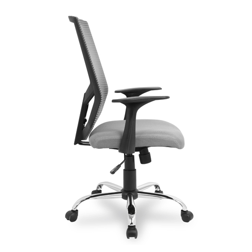 Механизм качания с регулировкой под вес и фиксацией в вертикальном положении. Регулировка высоты (газлифт). Крестовина металлическая, хромированная. Подлокотники выполнены из ударопрочного экологически чистого пластика. Материал обивки: капроновая сетка (спинка) + полиэстер (сидение).