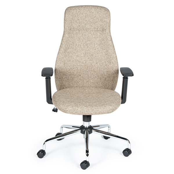 Кресло МИЛАН имеет оригинальный итальянский дизайн. Безукоризненное исполнение, высококачественные материалы. Удобная анатомическая форма. Механизм качания топ-ган с регулировкой жесткости. Кресло обтянуто износостойкой дизайнерской тканью типа рогожка. Подлокотники регулируются по высоте 6 положений. Выполнены из упругого, приятного на ощупь пластика. Накладка на спинку выполнена из высококачественного пластика цвета слоновая кость светлый тон. Оригинальная крестовина трубчатой формы переменного сечения из стали, покрытая хромом. Полиуретановые ролики. Хромированный газ-патрон. Особенности модели Хромированный газ-патрон, ролики для паркета, ламината. Эргономичная форма спинки кресла. Регулируемые по высоте подлокотники. Механизм качания Механизм качания топ-ган с регулировкой жесткости качания и с возможностью фиксации в рабочем прямом положении. Крестовина Хромированный металл Материал / ткань сиденья и спинки Износостойкая дизайнерская ткань Светло-бежевая ткань / Белый пластик спинки кресла / Материал наполнения ППУ