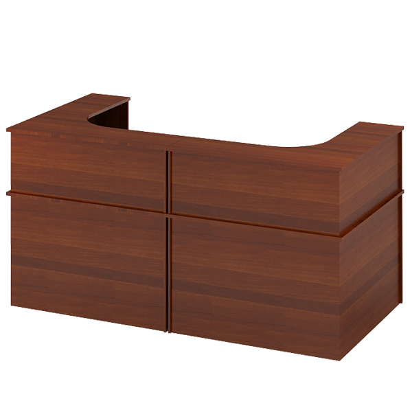 Стойка ресепшн округлая с нишами внутри, выполнена из ЛДСП, толщина столешницы 22 мм, боковые стенки ? 16 мм. Торцы деталей обработаны противоударной износостойкой кромочной лентой ПВХ толщиной 2 мм немецкого концерна ?REHAU?. Крёпежная и лицевая фурнитура производства России. Комплект состоит: ПСУ-11 Угловой элемент 120*120*118 см - 2 шт. * дополнительно можно заказать стяжки в стоимость не включено