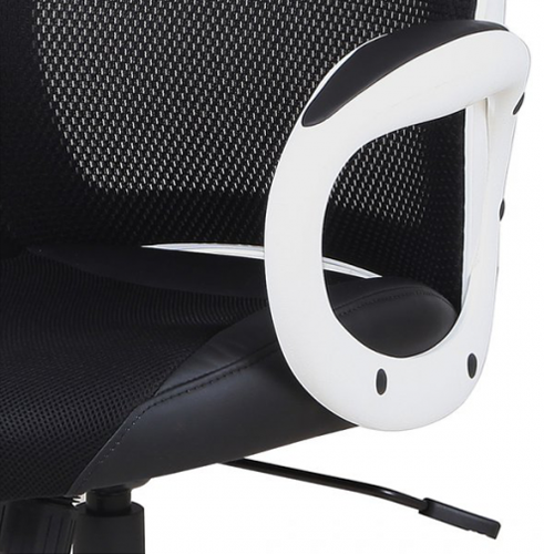 Обивка - сетка, экокожа Пластик белый Набивка - поролон высокой плотности Каркас немонолитный Подлокотники пластиковые Накладки подлокотников из экокожи Механизм качания с регулировкой под вес и возможностью фиксации в рабочем вертикальном положении, подъёмно-поворотный База - крестовина пластиковая, с накладками для ног Гарантия 6 месяцев