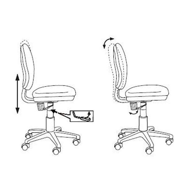 Пружинно-винтовой механизм качания спинки Нижний пластик сиденья Крестовина белый пластик Регулировка высоты (газлифт) Ограничение по весу: 120 кг Соответствует стандарту Bifma