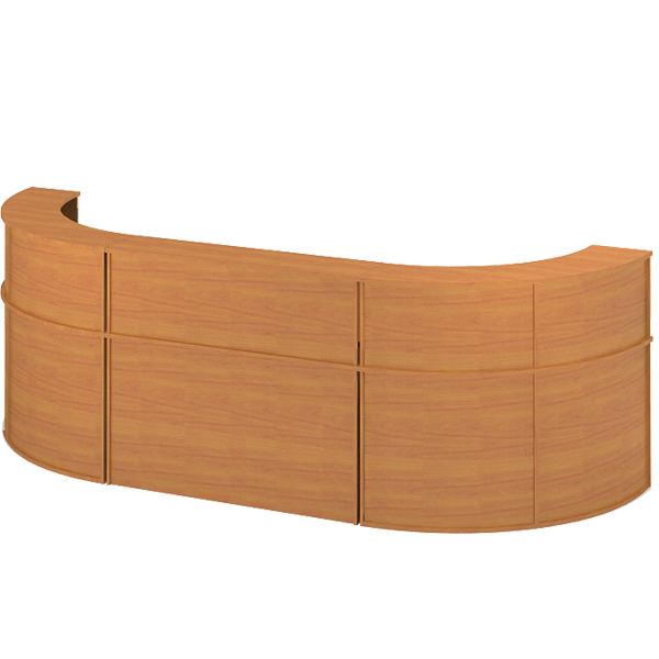 Стойка ресепшн округлая с нишами внутри, выполнена из ЛДСП, толщина столешницы 22 мм, боковые стенки ? 16 мм. Торцы деталей обработаны противоударной износостойкой кромочной лентой ПВХ толщиной 2 мм немецкого концерна ?REHAU?. Крёпежная и лицевая фурнитура производства России. Комплект состоит: ПСУ-70 Угловой элемент 112*112*118 см - 2 шт, Н-73 Надставка на стол 140*32*42 см - 1 шт, СТЦ-42 Стол с царгой в пол 140*60*76 см - 1 шт. * дополнительно можно заказать стяжки в стоимость не включено