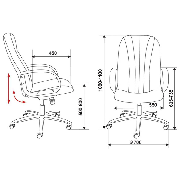 Механизм качания с регулировкой под вес и фиксацией в вертикальном положении Регулировка высоты (газлифт) Крестовина пластиковая Подлокотники пластиковые Ограничение по весу: 181 кг
