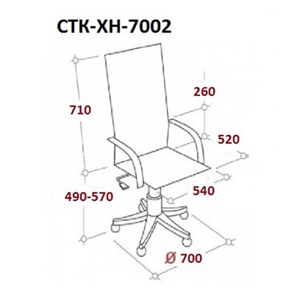 Усиленное широкое кресло руководителя современного дизайна. Кресло СТК-XH-7002 с большим успехом может вписаться как в современный офис, так и в интерьер квартиры. Механизм качания усиленный с регулировкой под вес и фиксацией в пяти положениях . Регулировка высоты: усиленный газлифт 4 класса. Сидение кресла сделано на 5см шире, а спинка на 8 см выше, чем у стандартного кресла. Каркас раздельный из многослойной фанеры. Подлокотники пластиковые, покрашены серебристой краской, покрыты лаком с мягкими накладками, обиты экокожей. Подлокотники откидываются назад для удобства посадки. Крестовина пластиковая, покрашена серебристой краской, покрыта лаком с рельефными накладками черного цвета. Ролики прорезиненные.