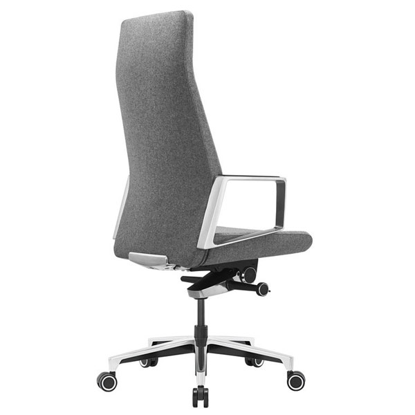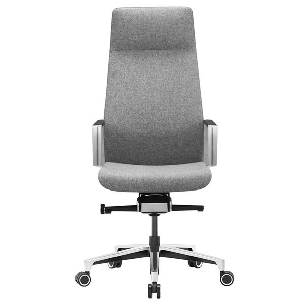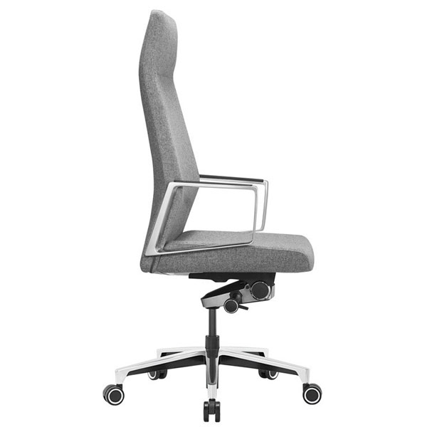 Современное кресло руководителя Механизм со смещенной осью качания с возможностью фиксации в 5 положениях Регулировка высоты (газлифт) Подлокотники алюминиевые с накладками Крестовина - полированный алюминий Колеса для паркета/ламината