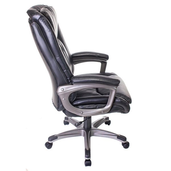 Механизм качания с регулировкой под вес и фиксацией в вертикальном положении Подлокотники пластиковые крашеные с мягкими накладками из рециклированной кожи Регулировка высоты (газлифт) Крестовина крашеная пластиковая с защитными накладками Колеса пластиковые Ограничение по весу: 136 кг Материал обивки: рециклированная кожа