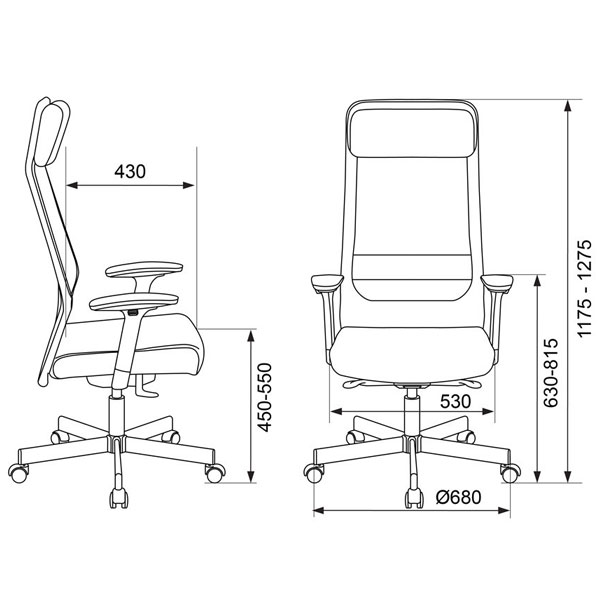 Регулировка высоты (газлифт). Синхромеханизм качания с фиксацией в нескольких положениях. Регулировка подлокотников в горизонтальной плоскости и по высоте. Спинка с комбинированной обивкой. Материал обивки: Спинка: сетчатая ткань + искусственная кожа. Сиденье: искусственная кожа. Крестовина: металлическая разборная. Колеса: колеса оснащены тормозом безопасности, реагирующим на изменение давления. Стул откатывается только под нагрузкой.
