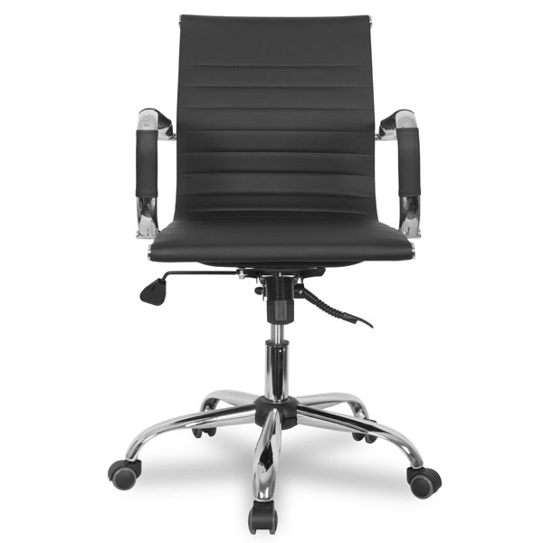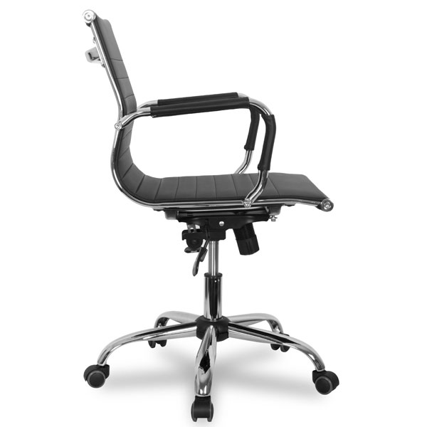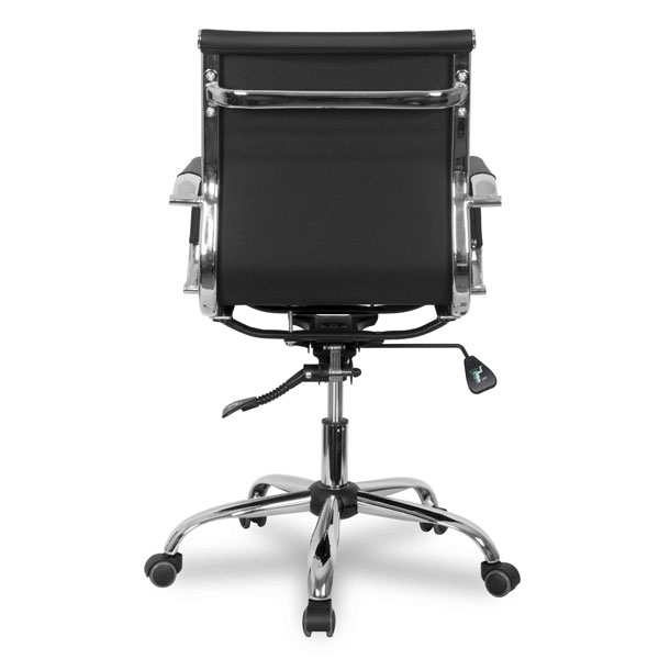 Механизм качания с регулировкой под вес и фиксацией в нескольких положениях. Регулировка высоты (газлифт) Каркас металлический хромированный Подлокотники хромированные с кожаными накладками Материал обивки: кожа PU