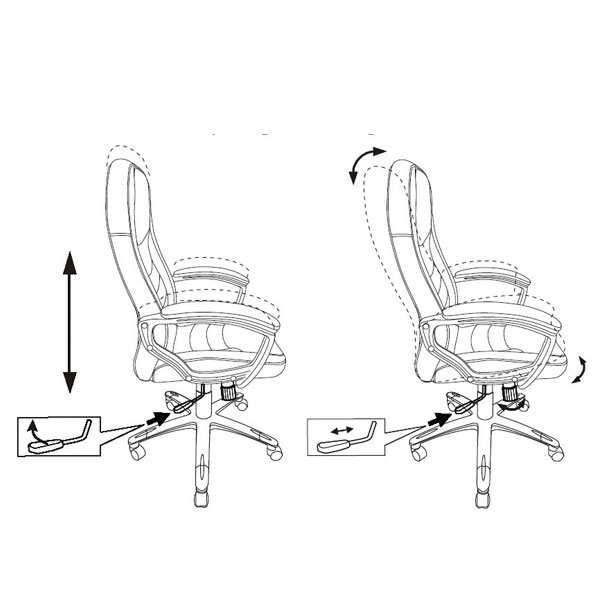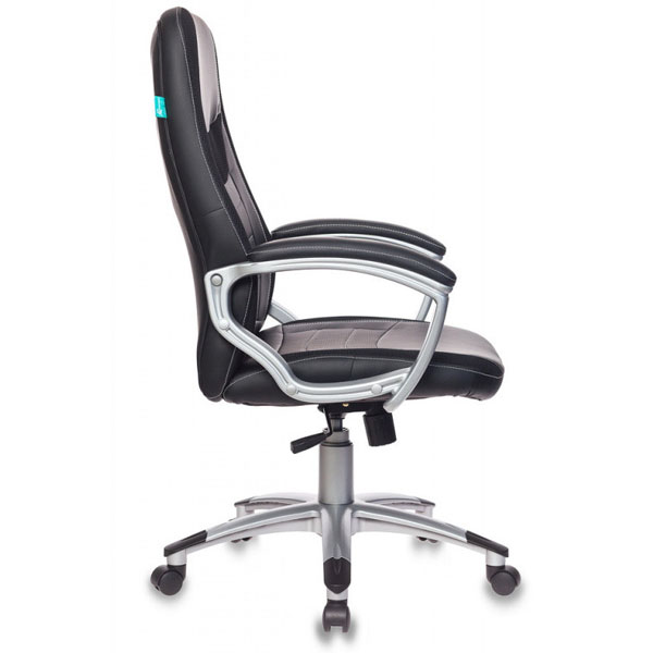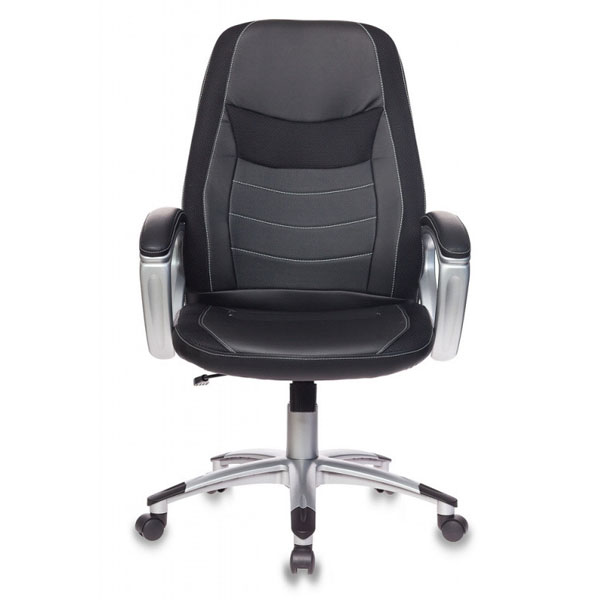 Современное кресло для руководителя Механизм качания с фиксацией с вертикальном положении Регулировка высоты (газлифт) Подлокотники пластиковые, с мягкими накладками Крестовина пластиковая крашенная с защитными накладками Ограничение по весу: 120 кг Материал обивки: искусственная кожа, ткань (вставки)