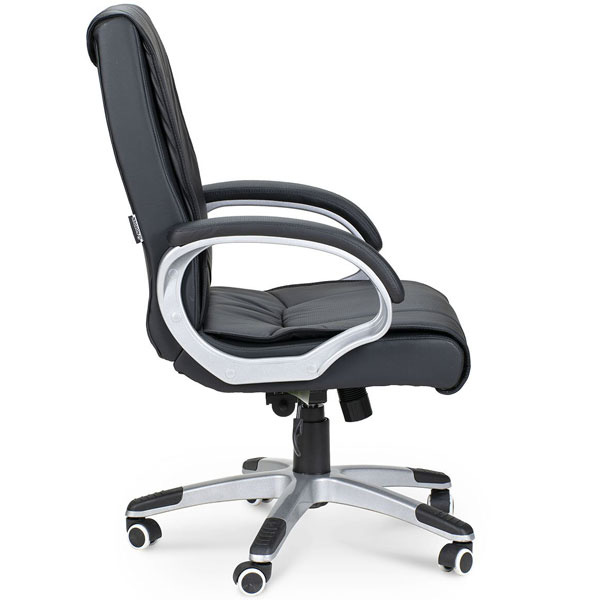 Недорогое современное офисное кресло. Покрытие - высококачественная экокожа. Крестовина и подлокотники из износостойкого пластика. Мягкая накладка из экокожи на подлокотниках. Защитные пластиковые накладки на крестовине. Полиуретановые ролики с прорезиненными вставками уменьшают износ поверхности пола.
