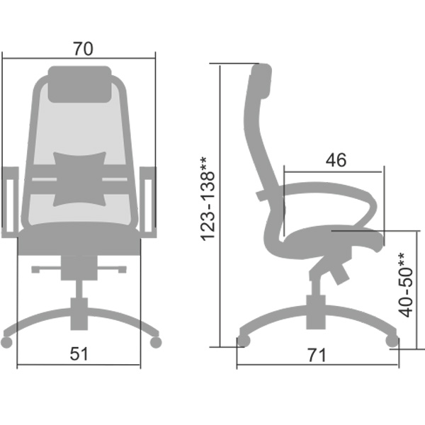 Преимущества: Абсолютно эргономичная форма спинки соответствует анатомической форме тела человека, Новая эргономичная форма спинки, помимо улучшения эргономических свойств, придает креслу устойчивость при максимальном отклонении. Двухзонная регулировка подпора поясницы обеспечивает идеальную поддержку спины независимо от комплекции сидящего, Сверхпрочный стальной каркас спинки и сиденья, покрытый зеркальным хромом, Гарантия 10 лет: на сетчатую ткань, армированную арамидным волокном и на стальной каркас, Синхромеханизм качания MULTIBLOCK, благодаря раздельному синхронному отклонению спинки и сиденья, позволяет телу периодически разгибаться, что улучшает кровоток и разминает мышцы спины, Возможность фиксации кресла в любом положении отклонения, Смещенный вперед центр качания позволяет стопам сидящего, при отклонении кресла, оставаться на полу, сосуды не пережимаются - сохраняется ощущение легкости в ногах, Регулировка глубины сиденья с помощью специального слайдера, обеспечивает эргономически правильную посадку пользователя в кресле, создавая дополнительный комфорт и удобство. Предусмотрена возможность фиксации глубины сиденья в пяти позициях. Пятилучье зеркальное литое с противооткатными полиуретановыми роликами, Противооткатные полиуретановые ролики обеспечивают дополнительную безопасность эксплуатации кресла: без нагрузки - предотвращают случайное перемещение кресла, при сидении - позволяют легко перемещаться. Ролики долговечные, бесшумные, не оставляют следов и царапин на полу, увеличенного диаметра (60 мм), Подголовник: мягкий комфортный из перфорированного износостойкого материала NewLeather*, Обновленный дизайн подголовника Подлокотники: стальные, покрытые зеркальным хромом, с мягкими накладками из износостойкого материала NewLeather*, Мягкое объемное сиденье обеспечивает дополнительный комфорт и ощущение мягкости кожаного дивана, Материалы обивки спинки: сверхпрочная сетчатая ткань, армированная арамидным волокном, Материалы обивки сиденья: перфорированный износостойкий материал NewLeather*, Сетчатая ткань, армированная высокопрочным арамидным волокном, позволяет Вашему телу свободно ?дышать?, сохраняя температурный баланс, исключая любые зоны перегрева в местах соприкосновения. Полимерная плетеная ткань с невероятной прочностью и износостойкостью. **Высота сиденья в верхнем и нижнем положении может быть изменена, в зависимости от модели применяемого газ-лифта.