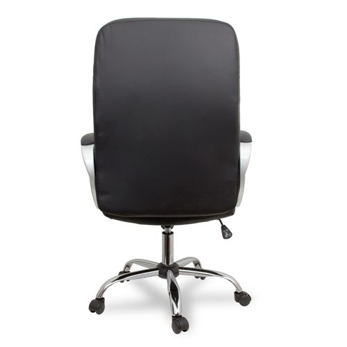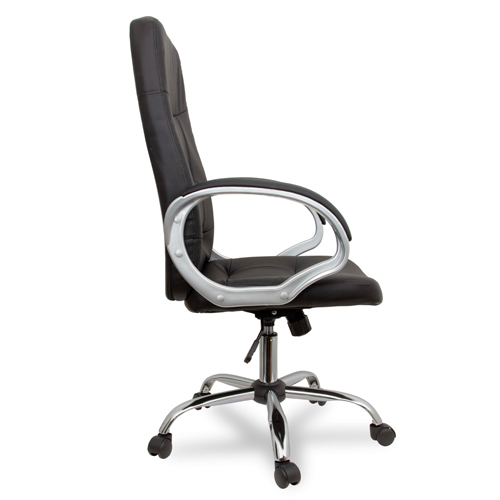 Механизм качания с регулировкой под вес и фиксацией в вертикальном положении. Регулировка высоты (газлифт). Каркас металлический хромированный. Подлокотники выполнены из полиамида с мягкими накладками. Материал обивки: кожа PU.