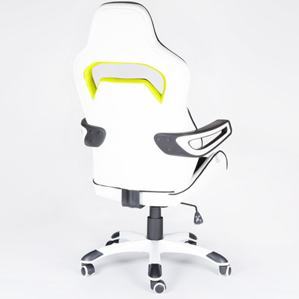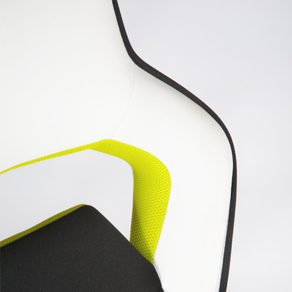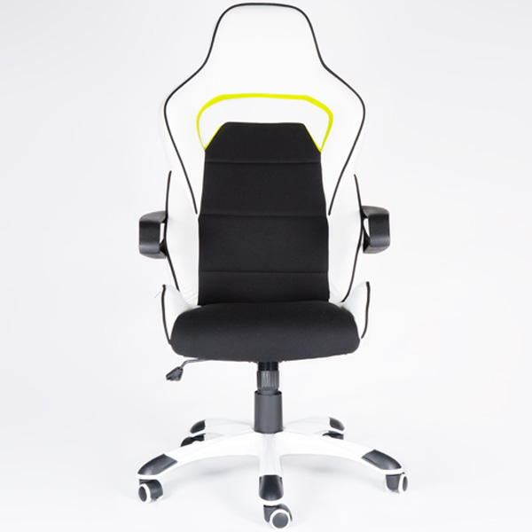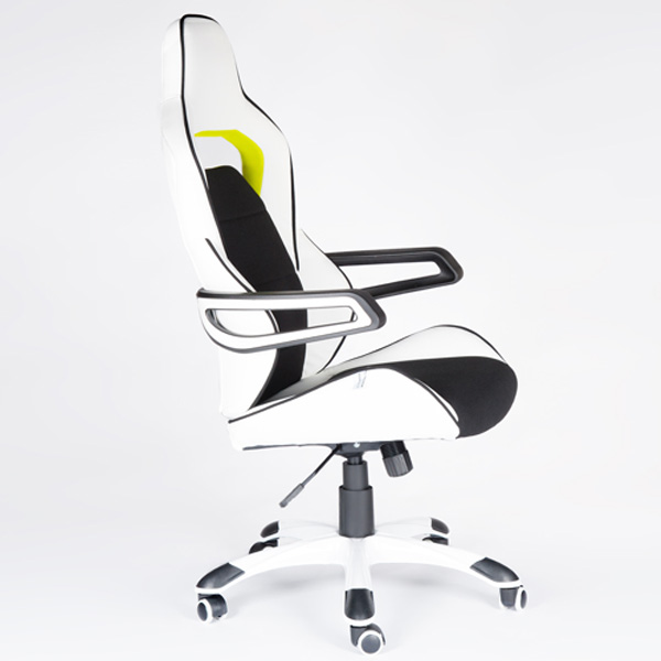 Дышащая вставка из ткани. Удобный большой подголовник. Подлокотники уникальной, дизайнерской формы. Газ-патрон закрыт декоративным телескопическим кожухом. Крестовина из высокопрочного пластика с декоративными накладками. Полиуретановые ролики уменьшают износ поверхности пола. Механизм качания с возможностью фиксации в рабочем положении. Регулировка жесткости качания. Материал наполнения ППУ.