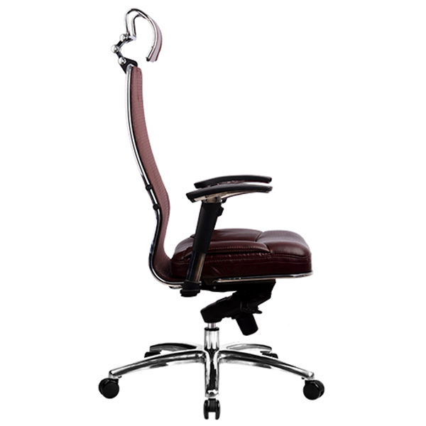 Отличие от других моделей серии Samurai: - укороченная натяжная сетчатая спинка со съемным 3D подголовником, - мягкое объемное сиденье из износостойкого перфорированного материала NewLeather*, - регулируемые 4D подлокотники. Преимущества: Абсолютно эргономичная форма спинки соответствует анатомической форме тела человека, Новая эргономичная форма спинки, помимо улучшения эргономических свойств, придает креслу устойчивость при максимальном отклонении. Двухзонная регулировка подпора поясницы обеспечивает идеальную поддержку спины независимо от комплекции сидящего, Сверхпрочный стальной каркас спинки и сиденья, покрытый зеркальным хромом, Гарантия 10 лет: на сетчатую ткань, армированную арамидным волокном и на стальной каркас, Синхромеханизм качания MULTIBLOCK, благодаря раздельному синхронному отклонению спинки и сиденья, позволяет телу периодически разгибаться, что улучшает кровоток и разминает мышцы спины, Возможность фиксации кресла в любом положении отклонения, Смещенный вперед центр качания позволяет стопам сидящего, при отклонении кресла, оставаться на полу, сосуды не пережимаются - сохраняется ощущение легкости в ногах, Регулировка глубины сиденья с помощью специального слайдера, обеспечивает эргономически правильную посадку пользователя в кресле, создавая дополнительный комфорт и удобство. Предусмотрена возможность фиксации глубины сиденья в пяти позициях. Пятилучье зеркальное литое с противооткатными полиуретановыми роликами, Противооткатные полиуретановые ролики обеспечивают дополнительную безопасность эксплуатации кресла: без нагрузки - предотвращают случайное перемещение кресла, при сидении - позволяют легко перемещаться. Ролики долговечные, бесшумные, не оставляют следов и царапин на полу, увеличенного диаметра (60 мм), Подголовник: Съемный 3D подголовник из перфорированного износостойкого материала NewLeather*, обеспечивает идеальную поддержку головы в любом положении. Регулируется по высоте, глубине, углу наклона. Каркас подголовника: стальной, покрытый зеркальным хромом, Регулируемые 4D подлокотники настраиваются под индивидуальные особенности рабочего места пользователя, разгружают плечи и предплечья сидящего, регулируются по высоте, углу поворота, а также меняется расстояние между подлокотниками, *регулировка высоты *регулировка расстояния между подлокотниками *регулировка угла поворота *регулировка вперед-назад Мягкое объемное сиденье обеспечивает дополнительный комфорт и ощущение мягкости кожаного дивана, Материалы обивки спинки: сверхпрочная сетчатая ткань, армированная арамидным волокном, Материалы обивки сиденья: перфорированный износостойкий материал NewLeather*, Сетчатая ткань, армированная высокопрочным арамидным волокном, позволяет Вашему телу свободно ?дышать?, сохраняя температурный баланс, исключая любые зоны перегрева в местах соприкосновения. Полимерная плетеная ткань с невероятной прочностью и износостойкостью. **Высота сиденья в верхнем и нижнем положении может быть изменена, в зависимости от модели применяемого газ-лифта.